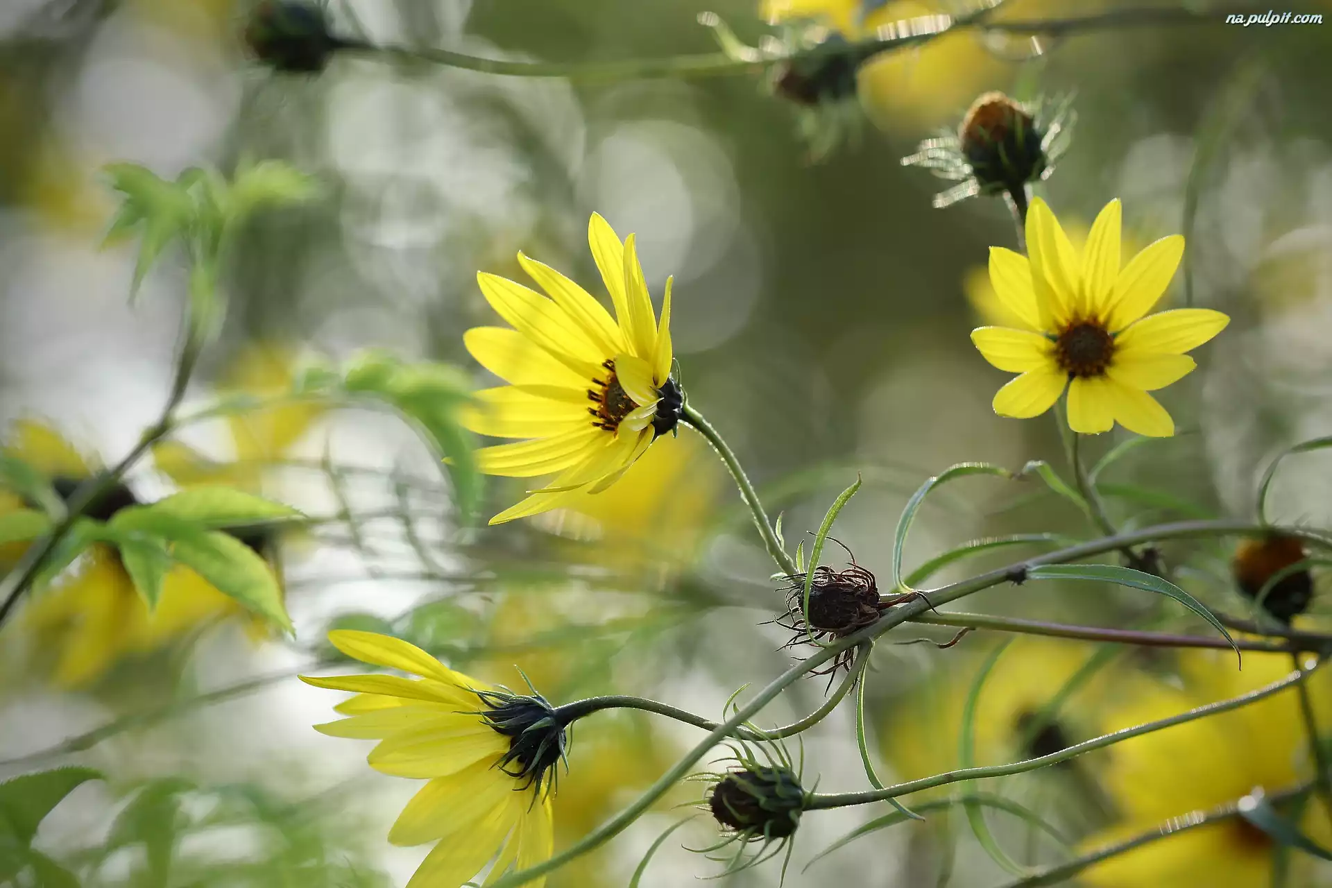 Zbliżenie, Słonecznik ozdobny, Kwiaty, Żółte, Helianthus Na Pulpit