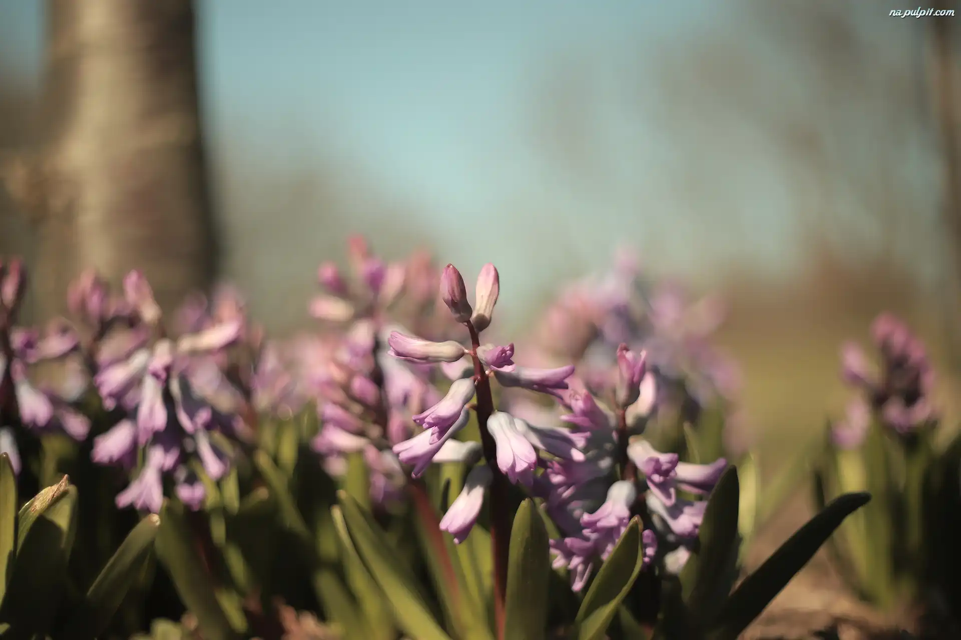 Zbliżenie, Hiacynty, Różowe, Kwiaty