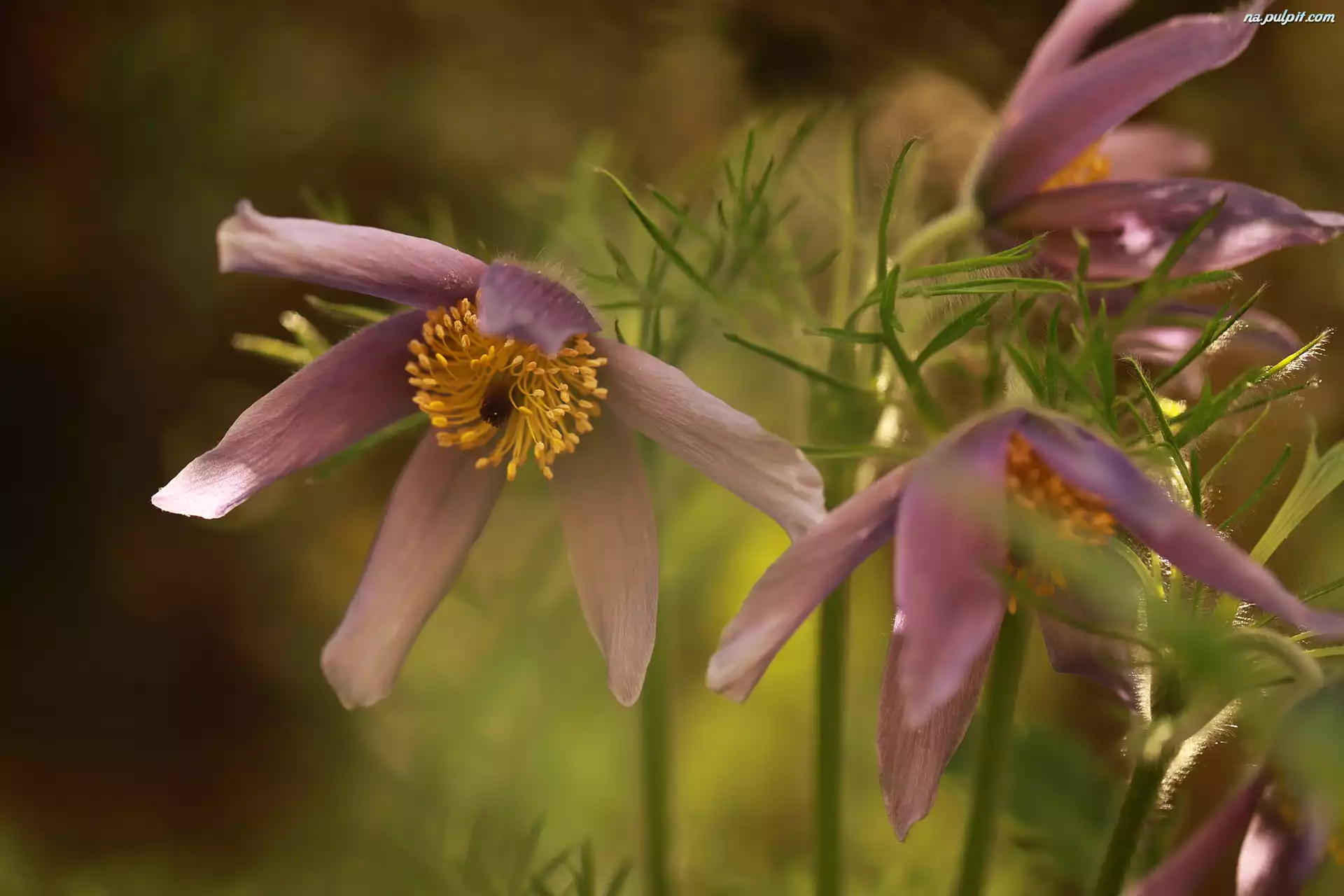 Zbliżenie, Fioletowe, Sasanki, Kwiaty
