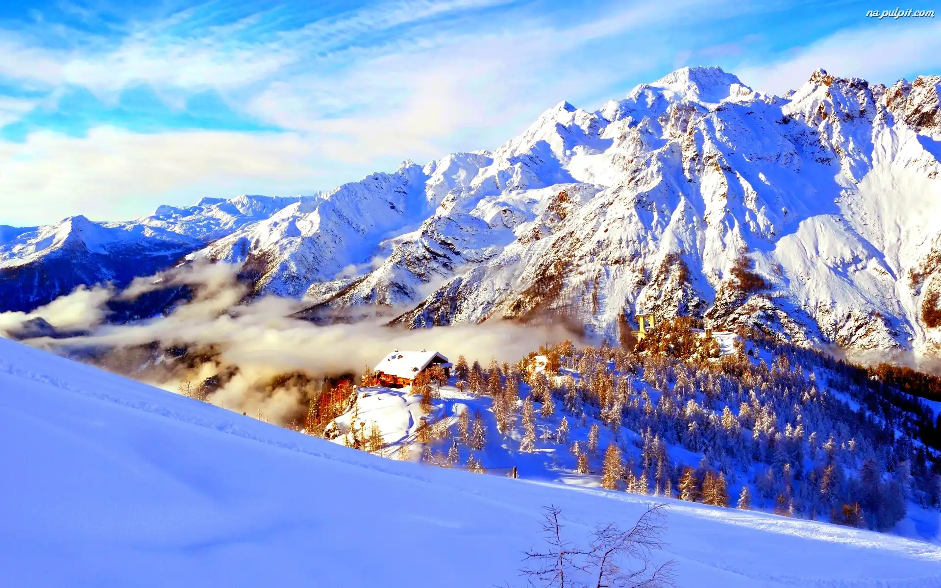 Zbocze, Góry, Zima, Dom Na Pulpit
