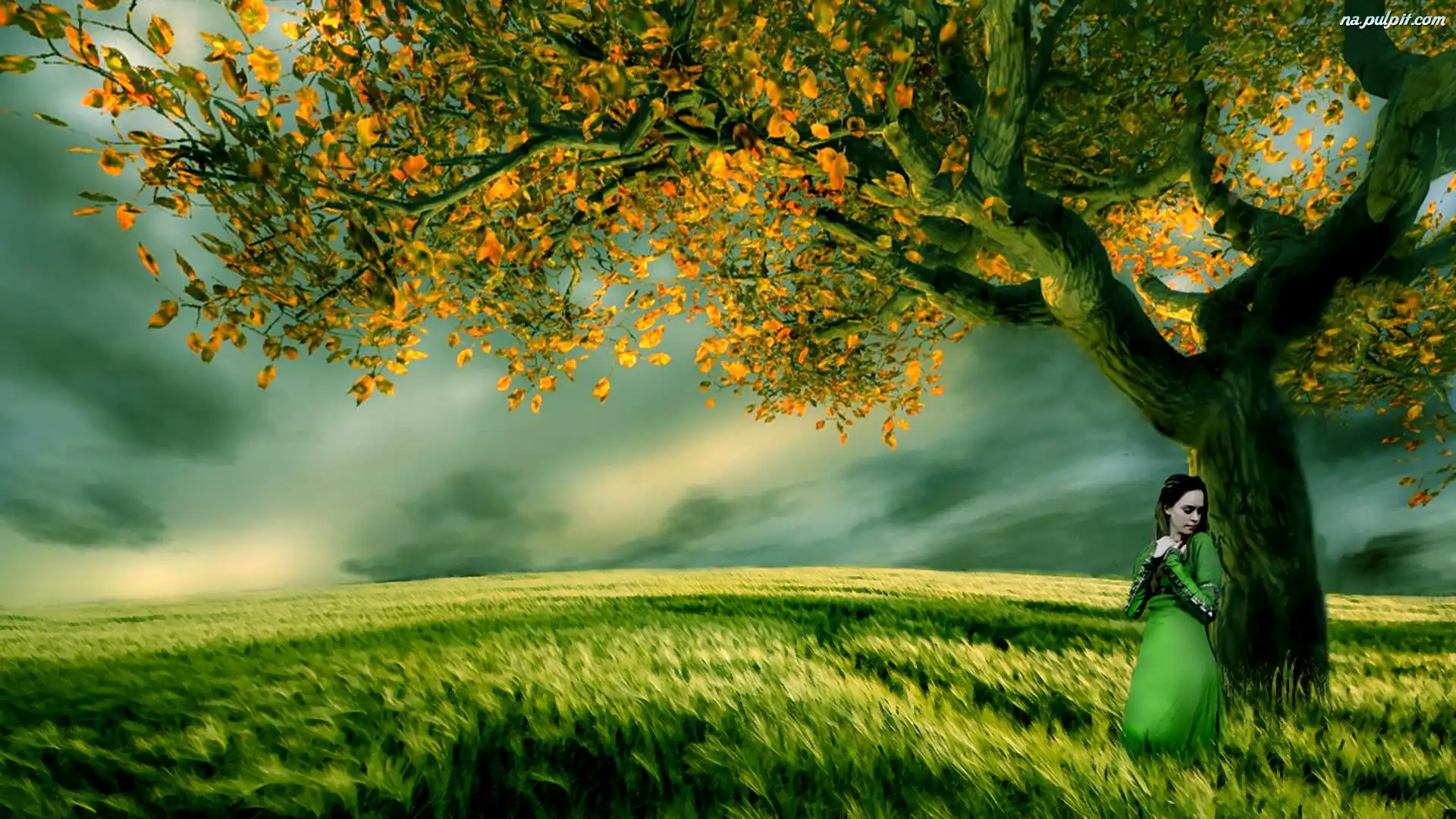 Zbóż, Drzewo, Kobieta, Łany Na Pulpit