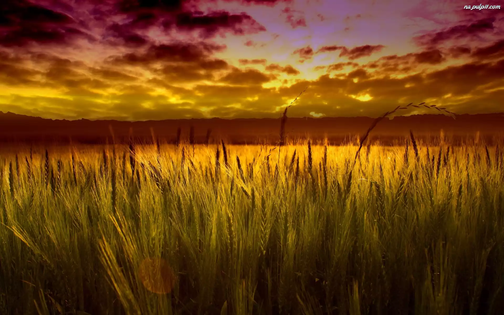 Zbóż, Słońca, Zachód, Kłosy Na Pulpit