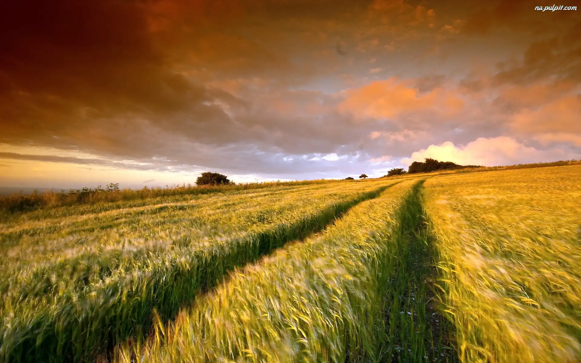 Zboża, Słońca, Zachód, Pola Na Pulpit