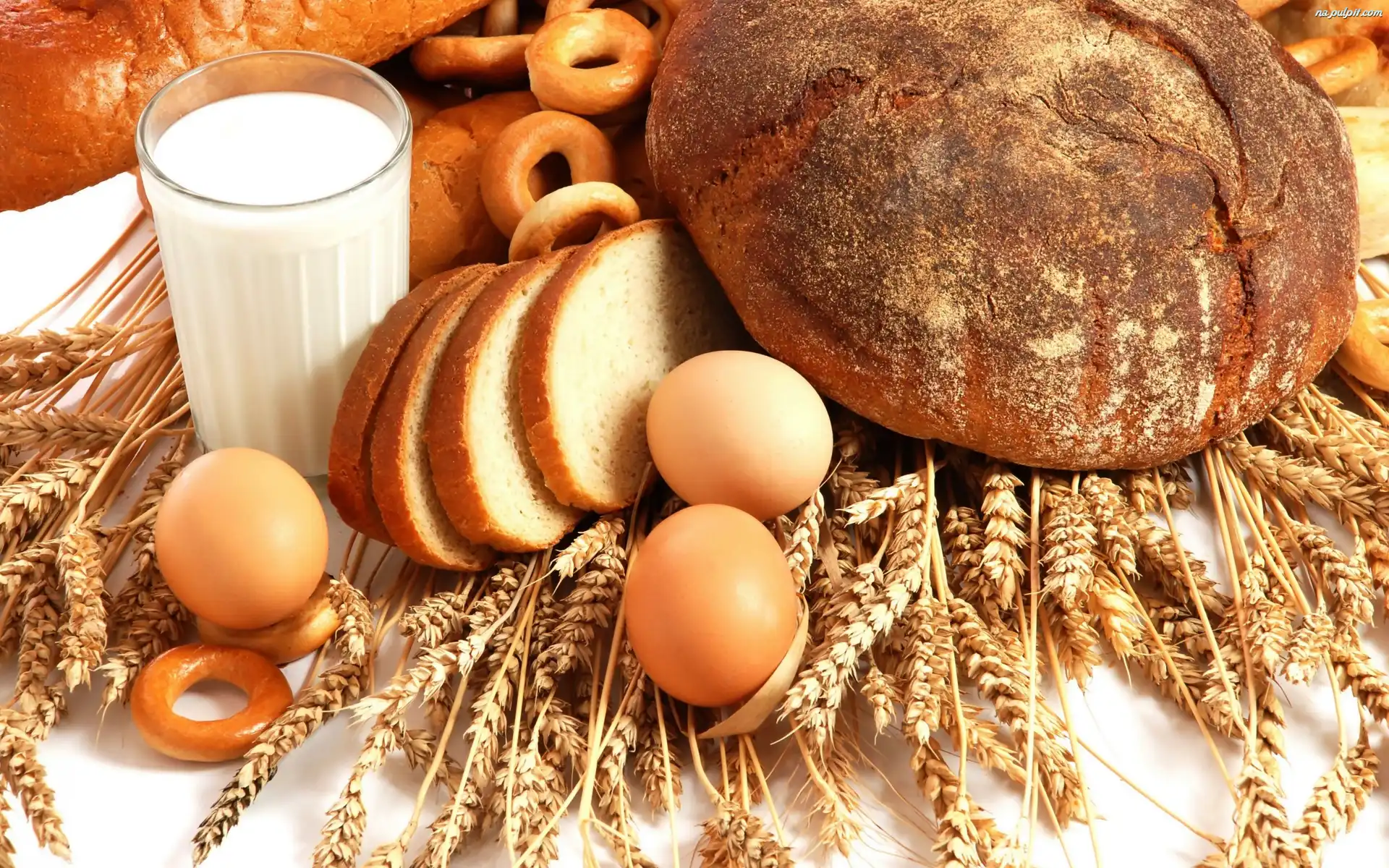 Zboże, Jajka, Mleko, Kompozycja, Chleb