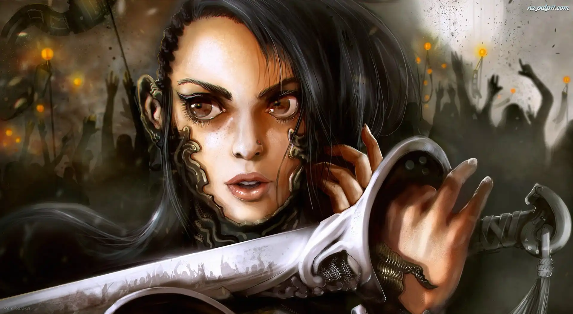 Zbroja, Oczy, Brązowe, Dziewczyna, Broń