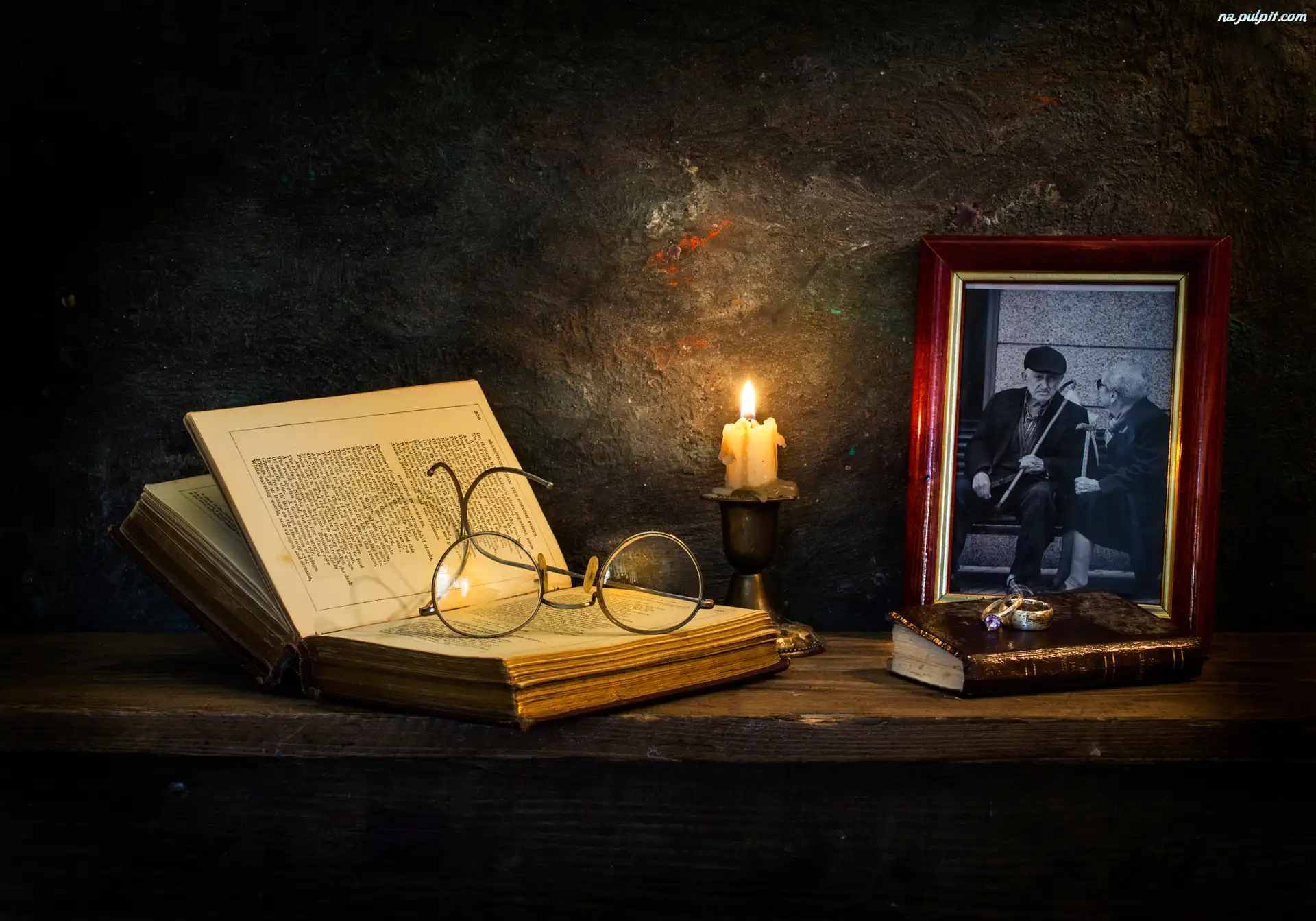 Zdjęcie, Świeca, Książki, Okulary Na Pulpit