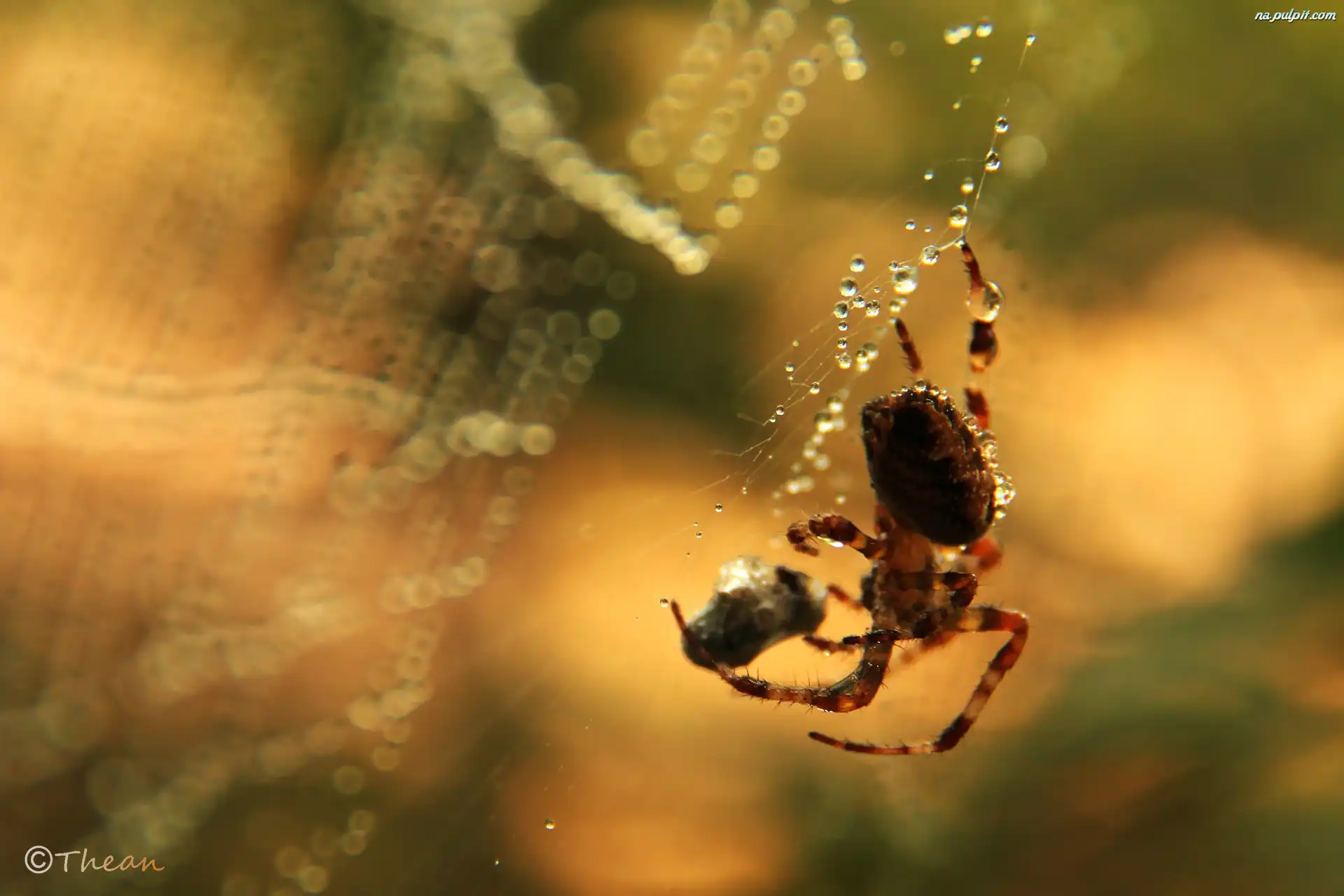 Zdobycz, Pajęczyna, Sieć, Pająk, Kropelki Na Pulpit