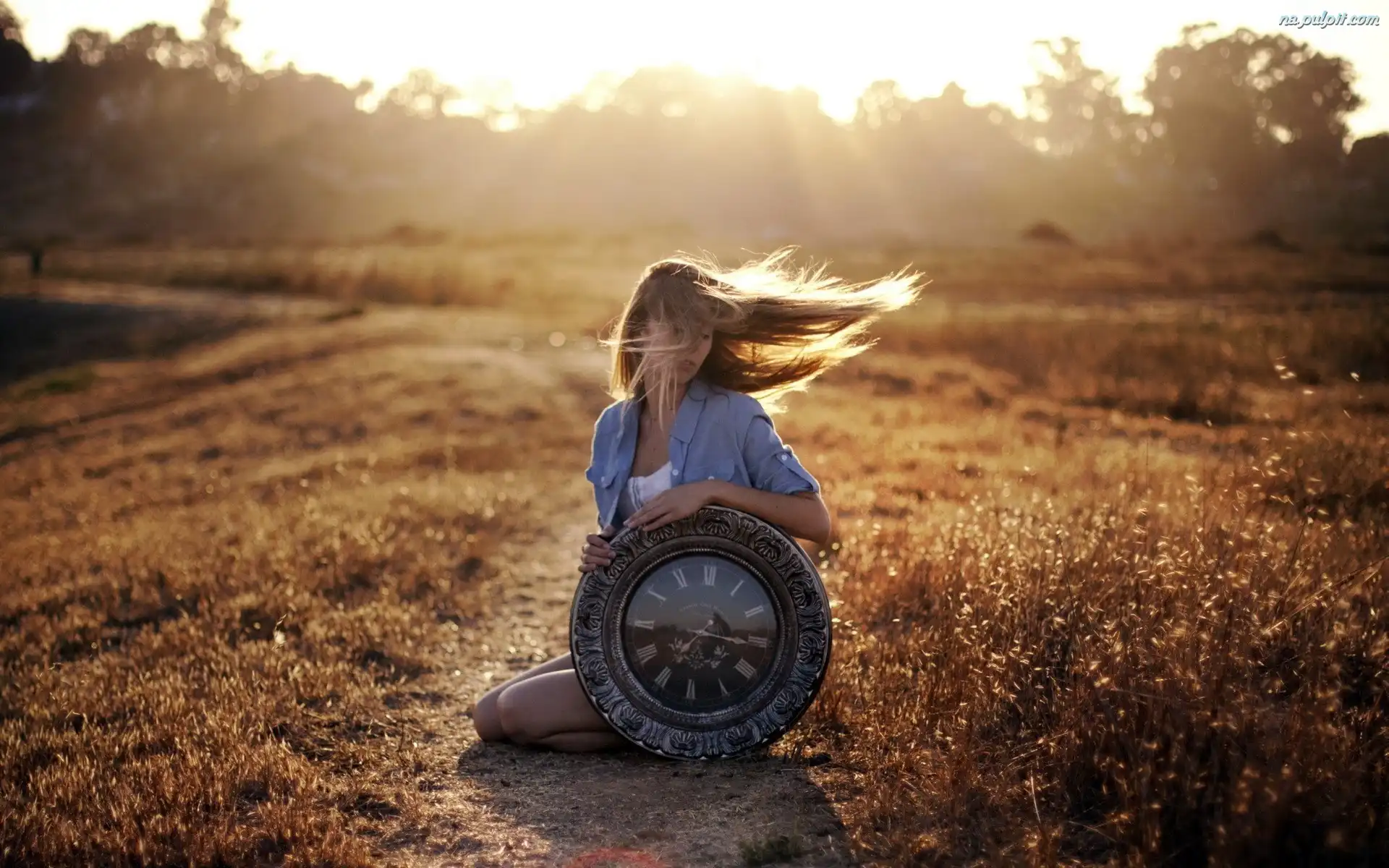 Ścieżka, Długie, Włosy, Promienie, Słońca, Wiatr, Dziewczyna, Zegar