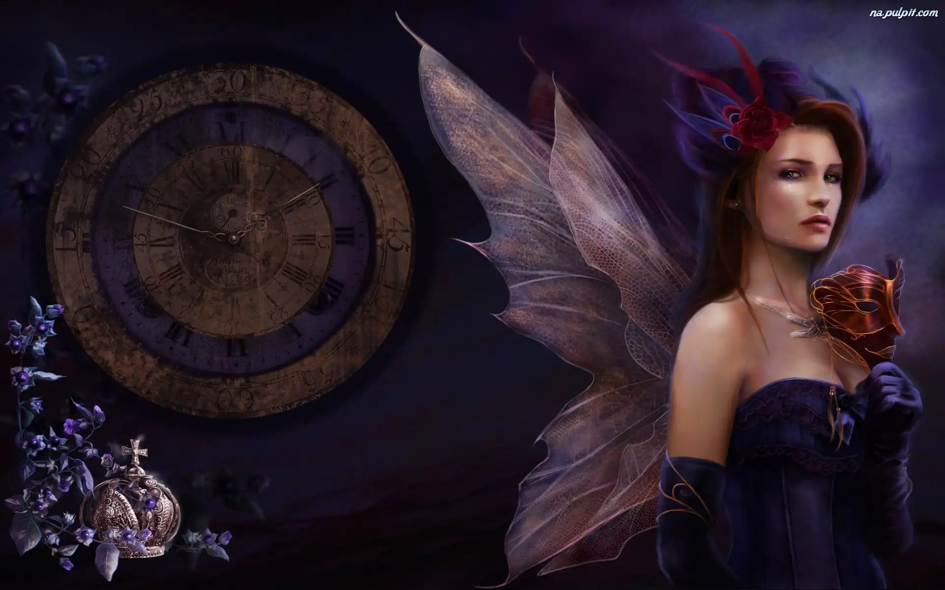 Zegar, Motyl, Kobieta, Maska