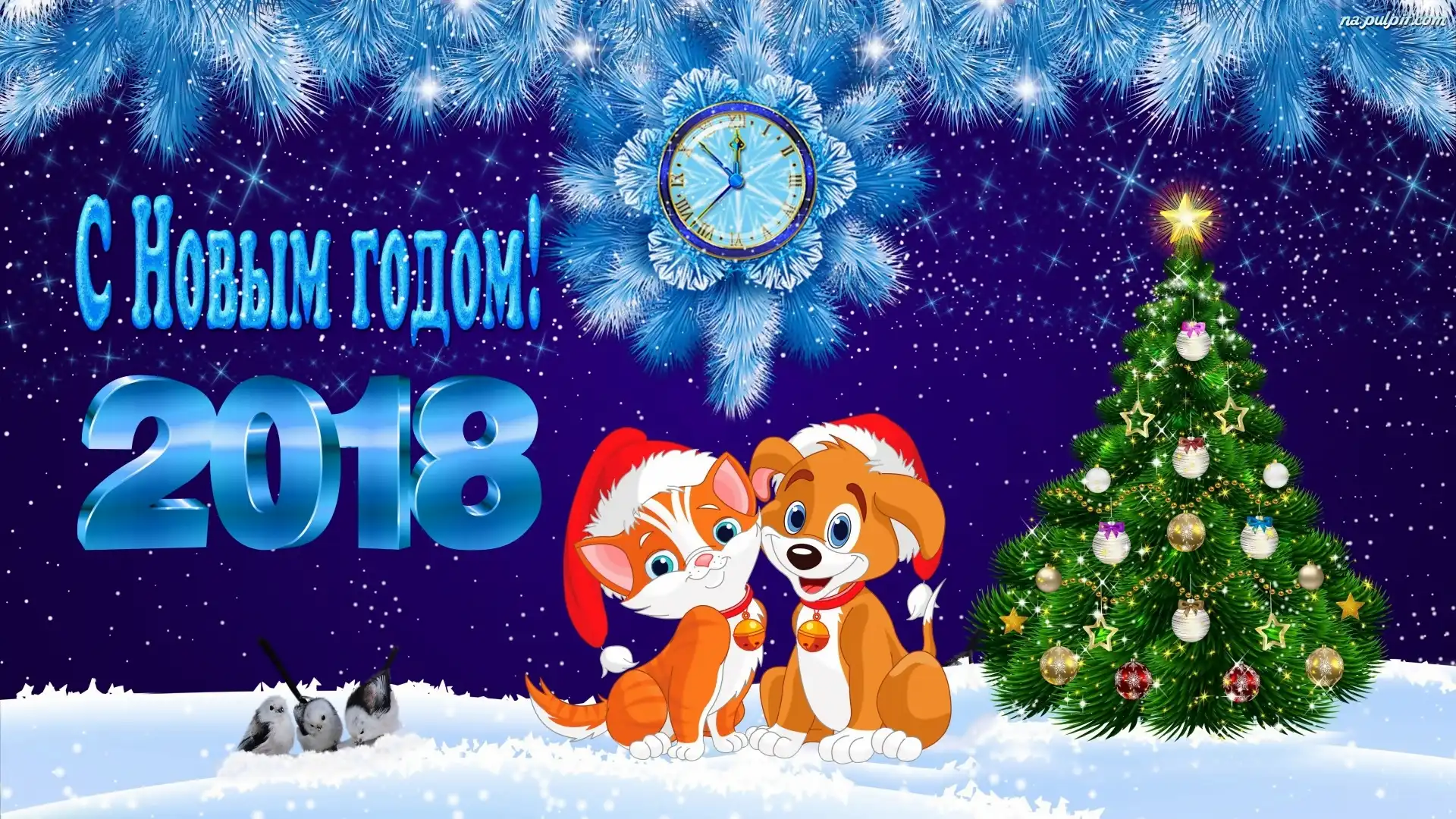 Zegar, Pies, 2018, Nowy Rok, Kot