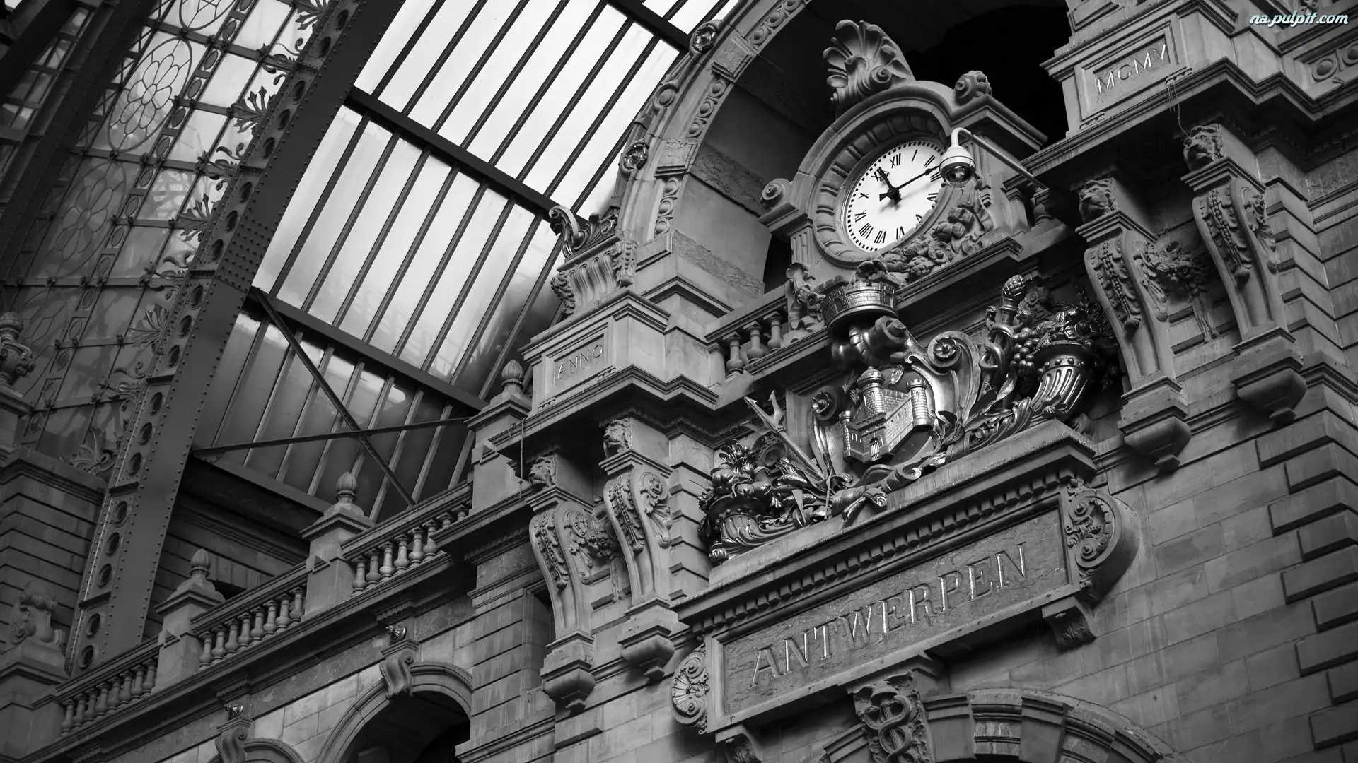 Zegar, Dworzec, Zabytkowy, Antwerpia Na Pulpit