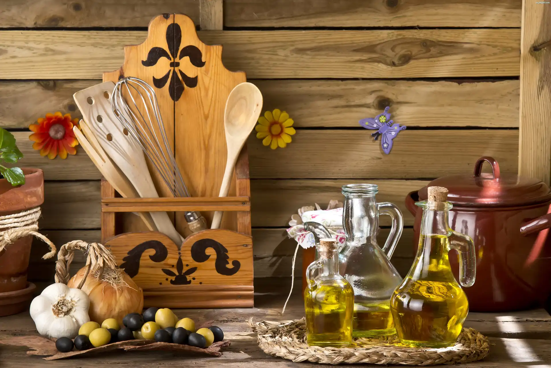 Zestaw kuchenny, Olej, Åšliwki, Czosnek, Garnek Na Pulpit