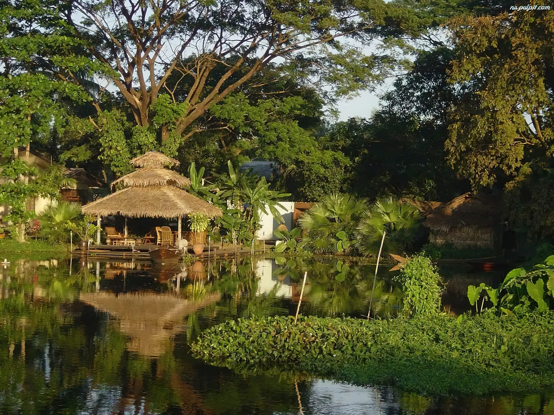 Zieleń, Staw, Altana, Drzewa Na Pulpit