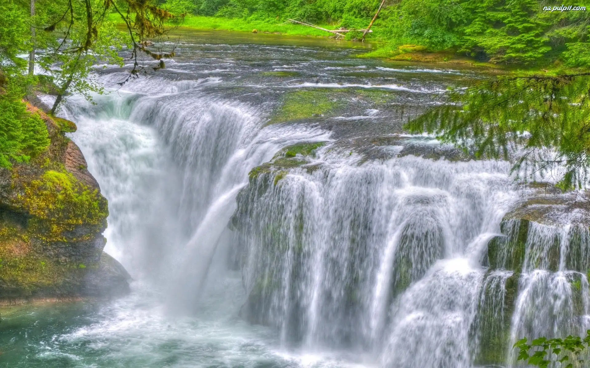Drzewa, Zieleń, Wodospad Na Pulpit
