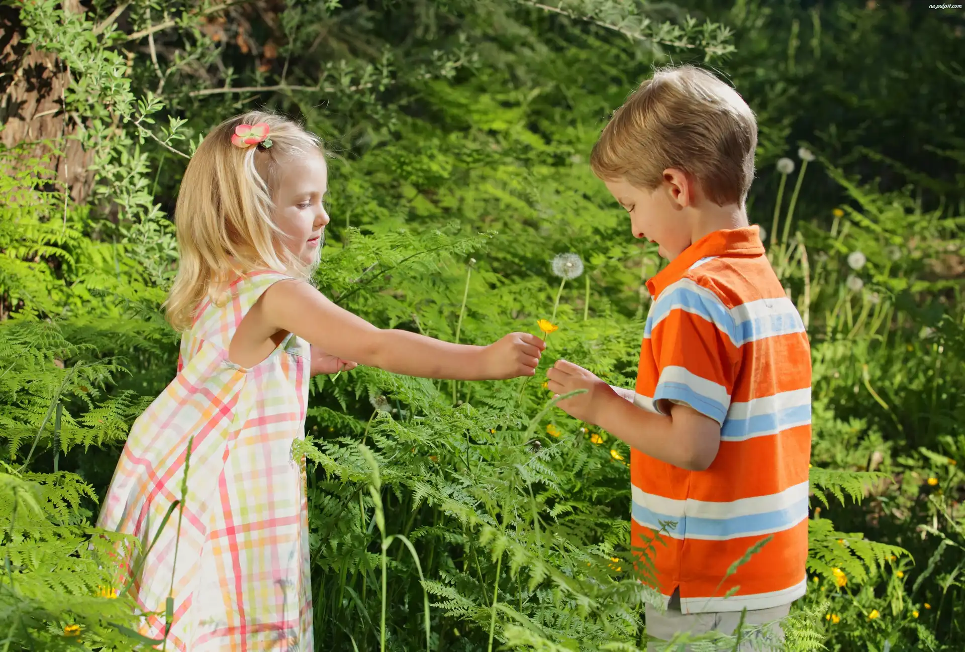 Zieleń, Chłopiec, Dzieci, Dziewczynka