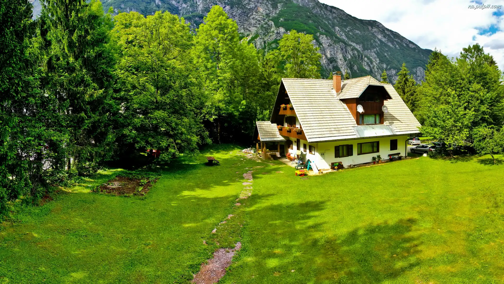 Zieleń, Dom, Góry, Drzewa Na Pulpit