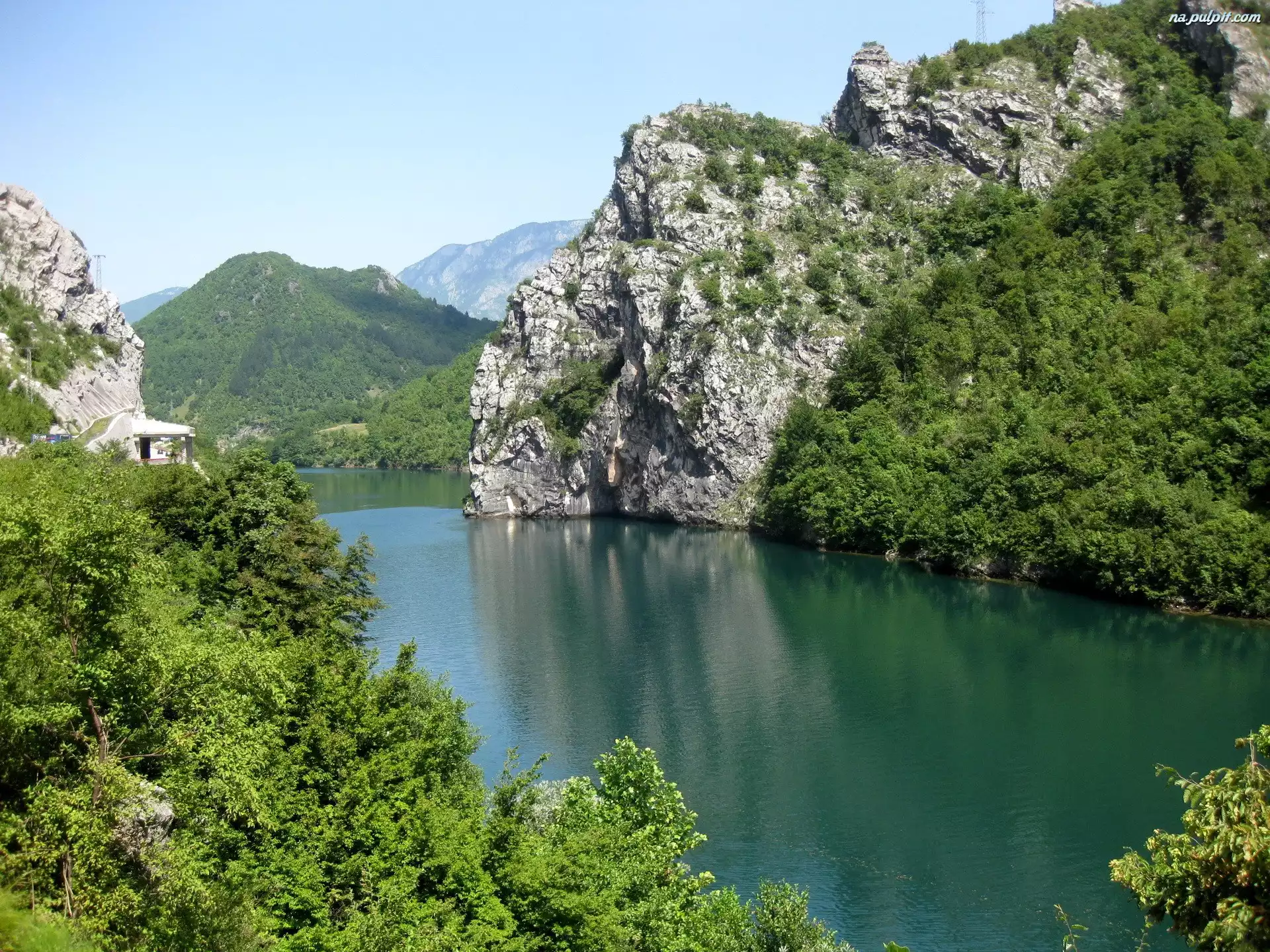 Zieleń, Rzeka, Góry, Skały Na Pulpit