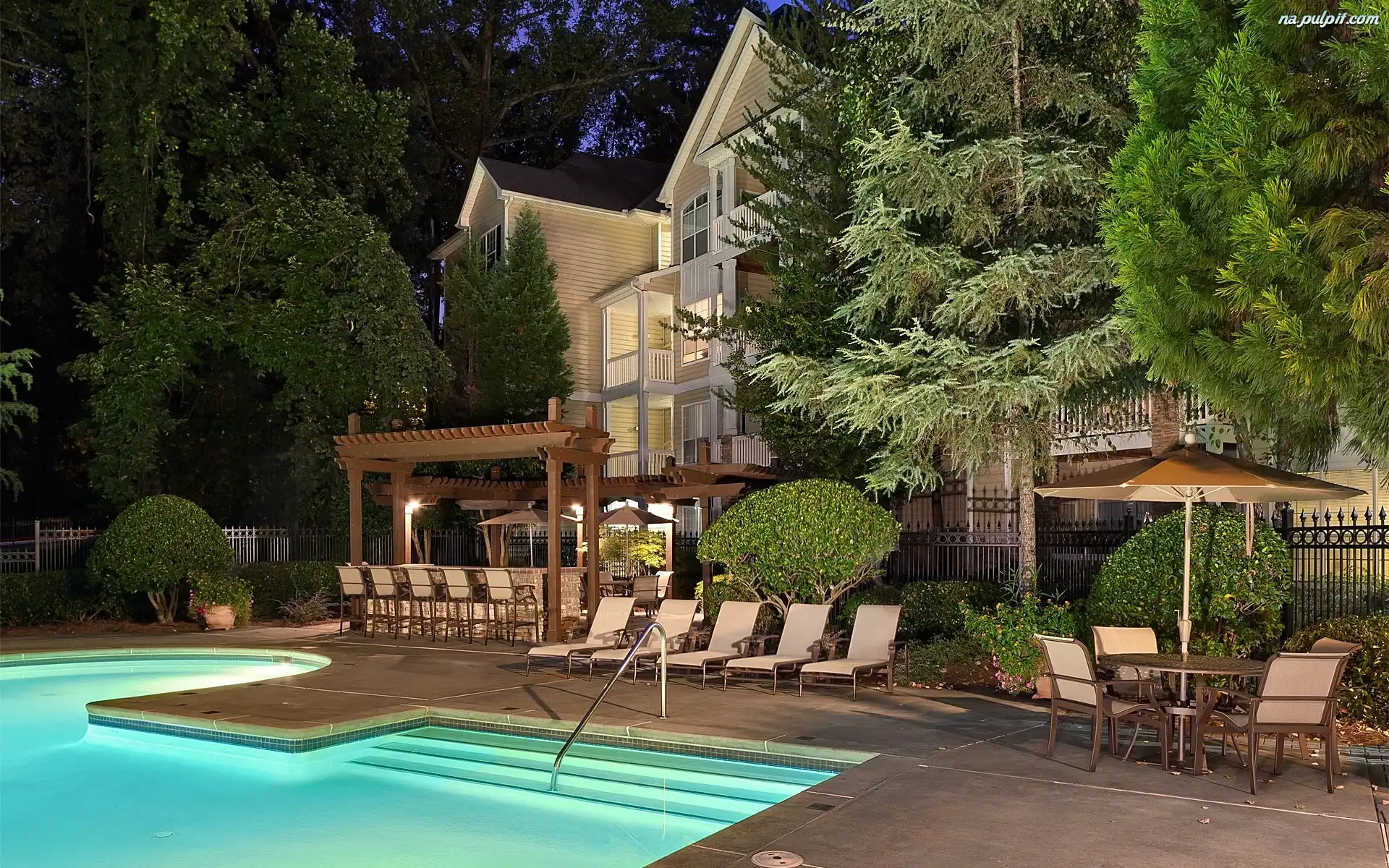 Zieleń, Basen, Hotel, Drzewa Na Pulpit