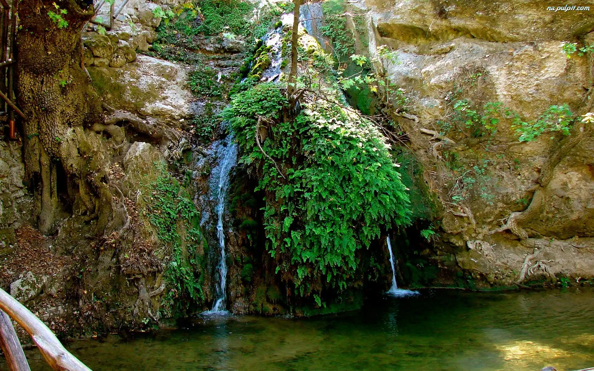 Zieleń, Korzenie, Wodospad, Mały, Drzew Na Pulpit