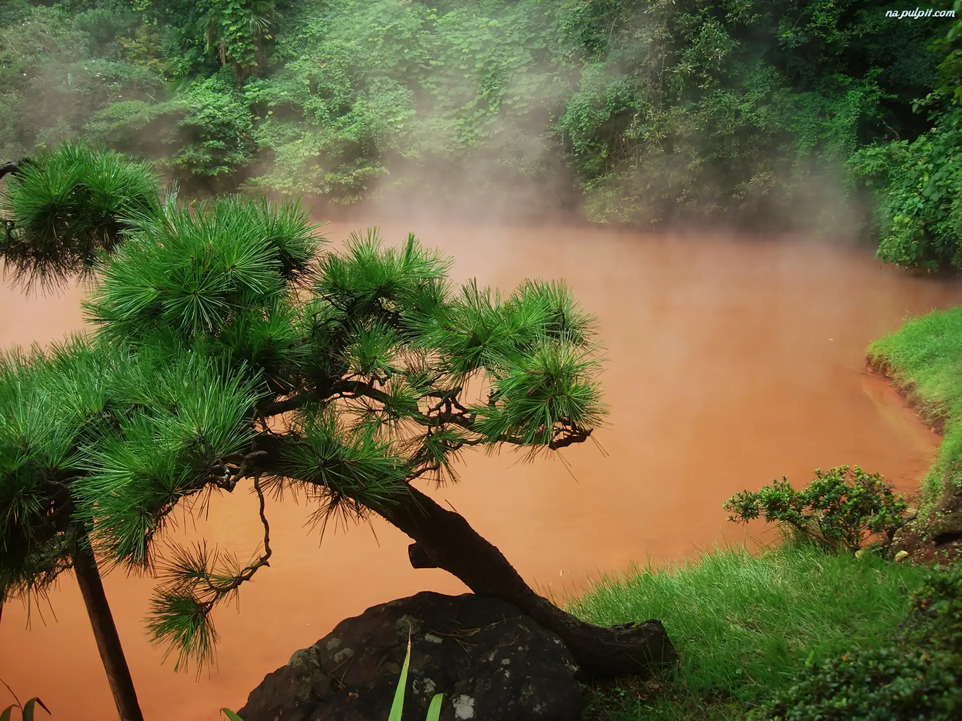 Zieleń, Woda, Mgła, Drzewa Na Pulpit