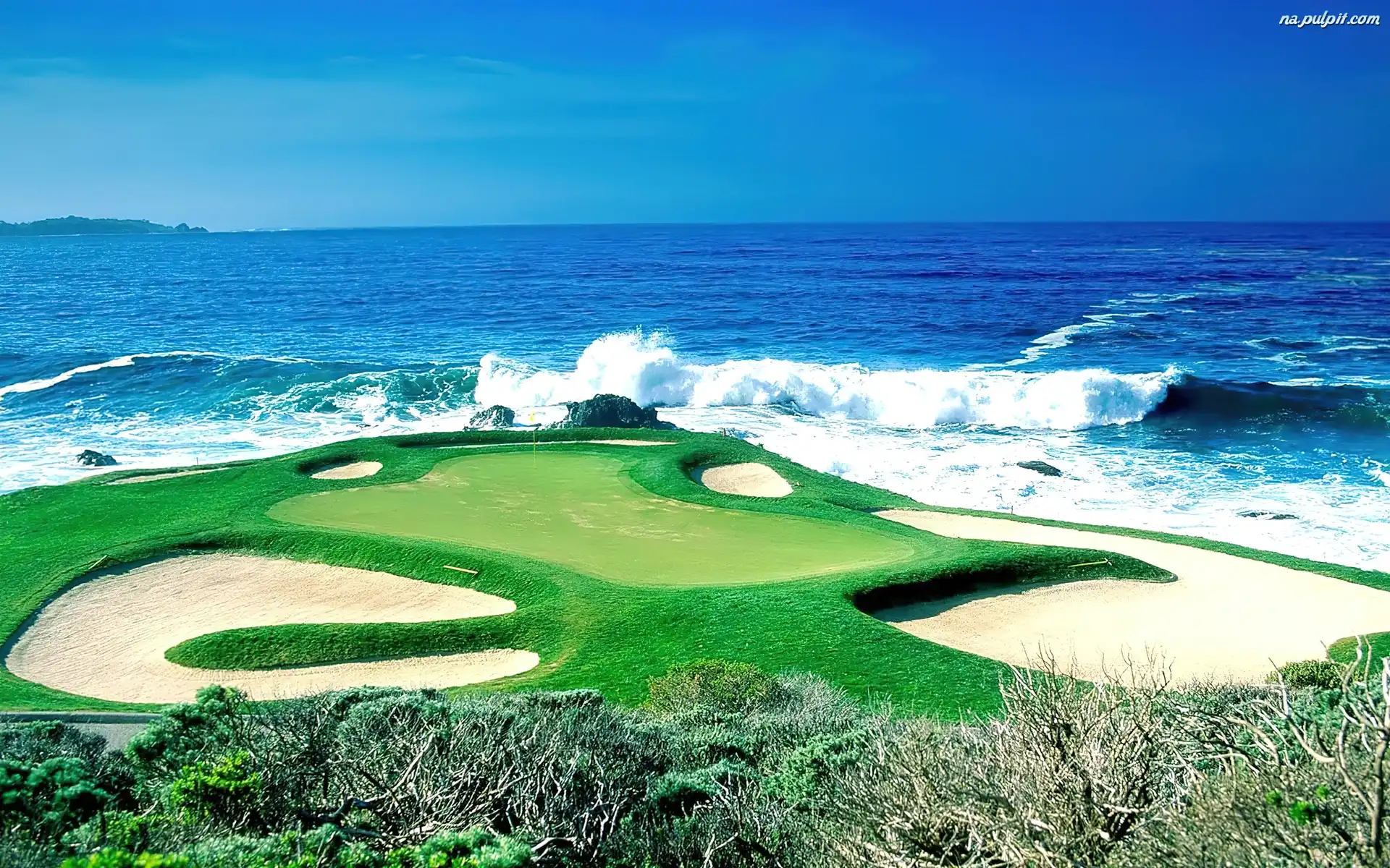 Zieleń, Morze, Niebo, Plaża Na Pulpit