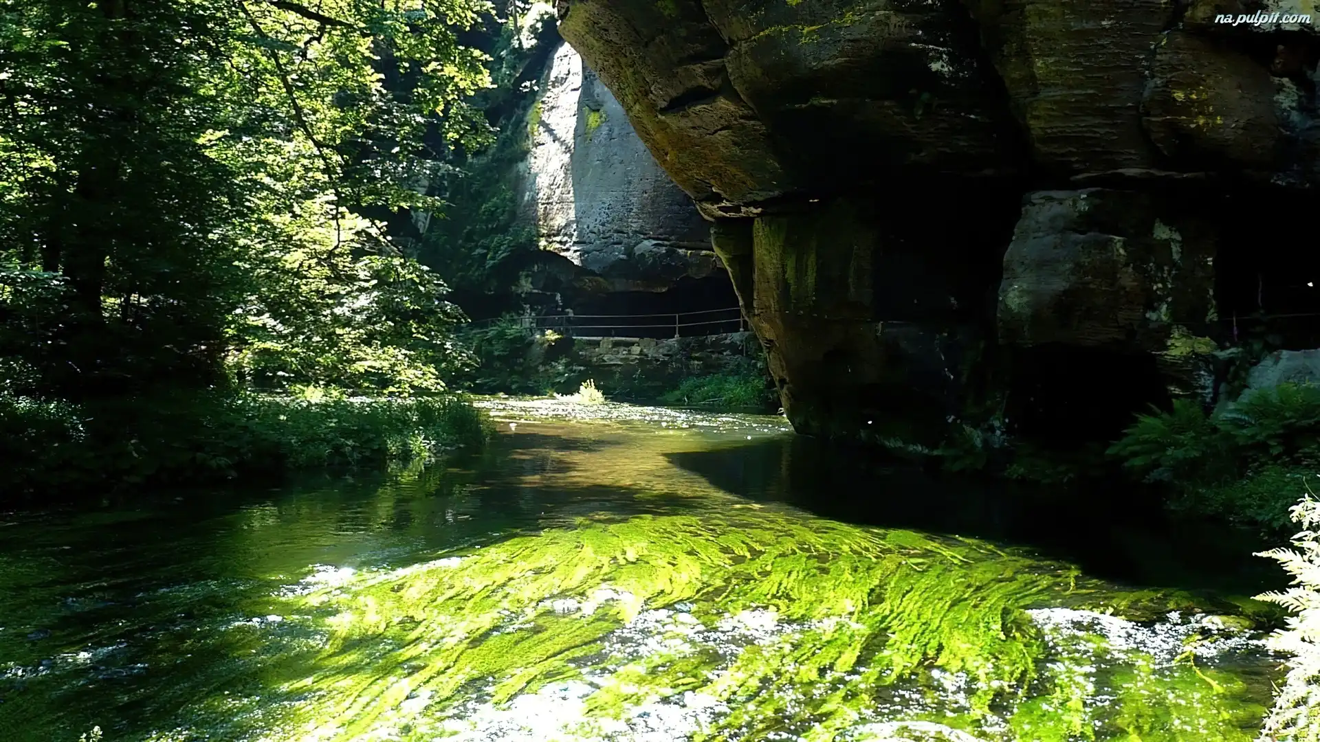 Zieleń, Drzewa, Skały, Rzeka Na Pulpit