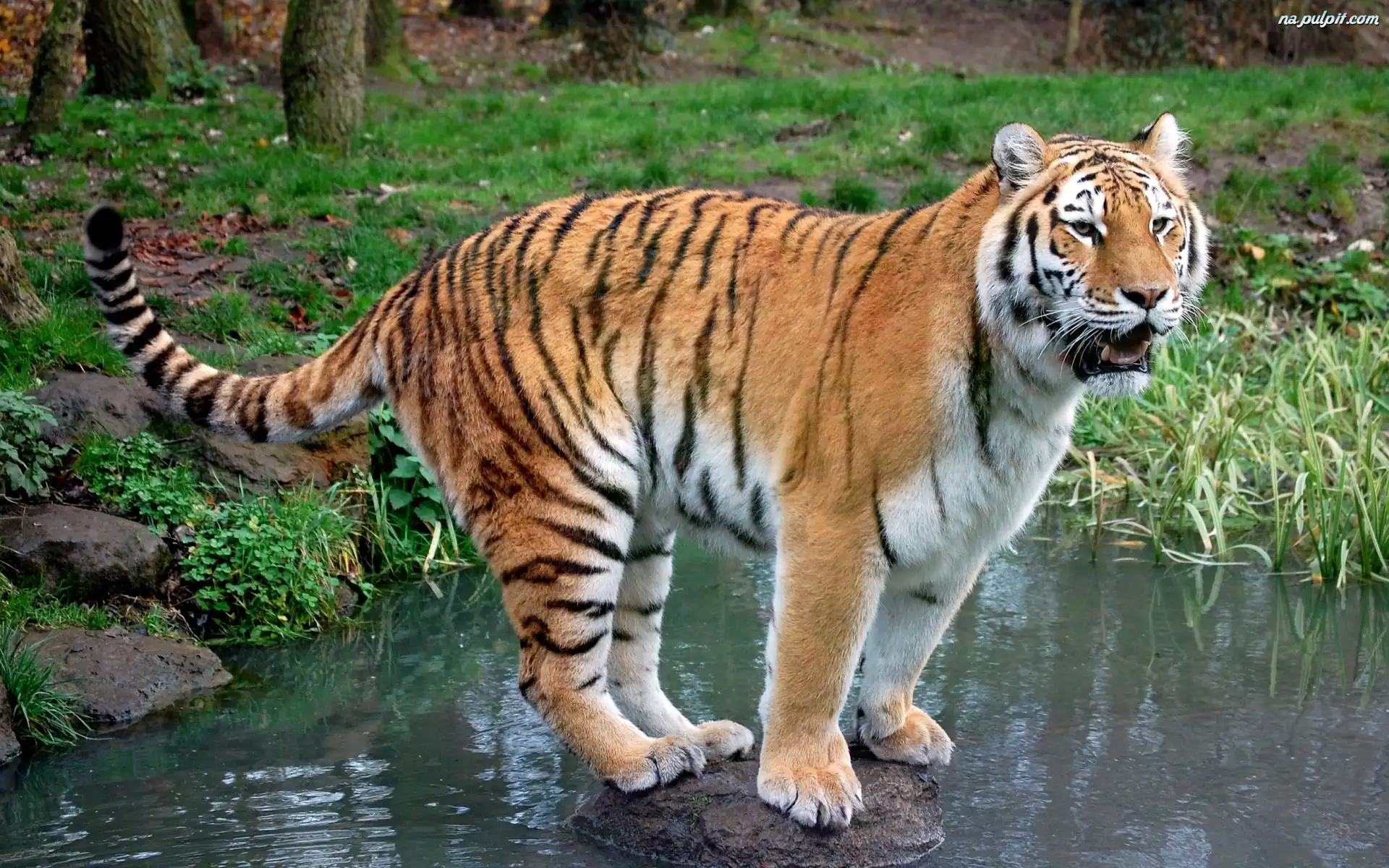 Zieleń, Kamień, Tygrys, Woda Na Pulpit