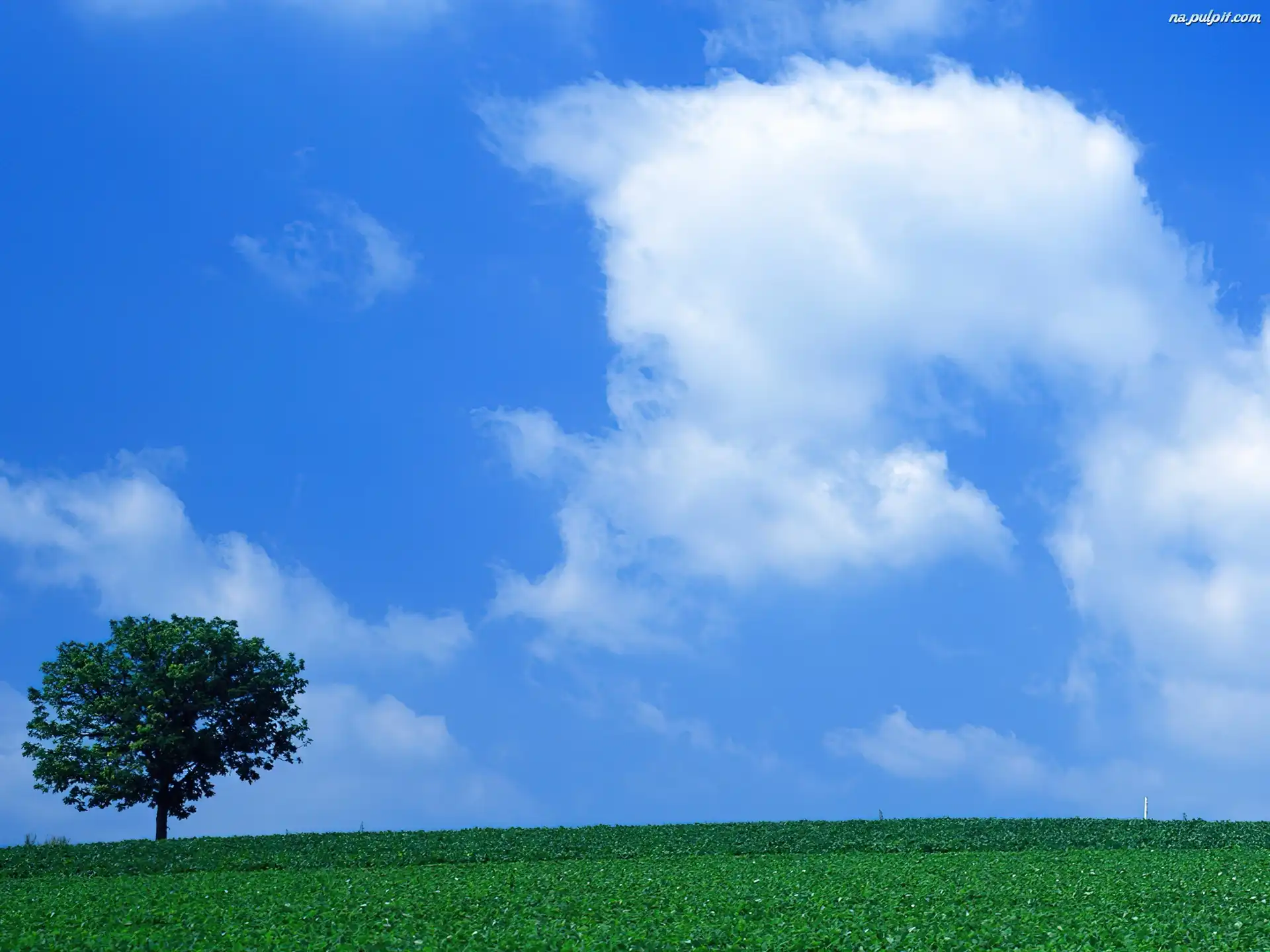 Zielona, Błękitne, Niebo, Trawa, Łąka, Drzewo
