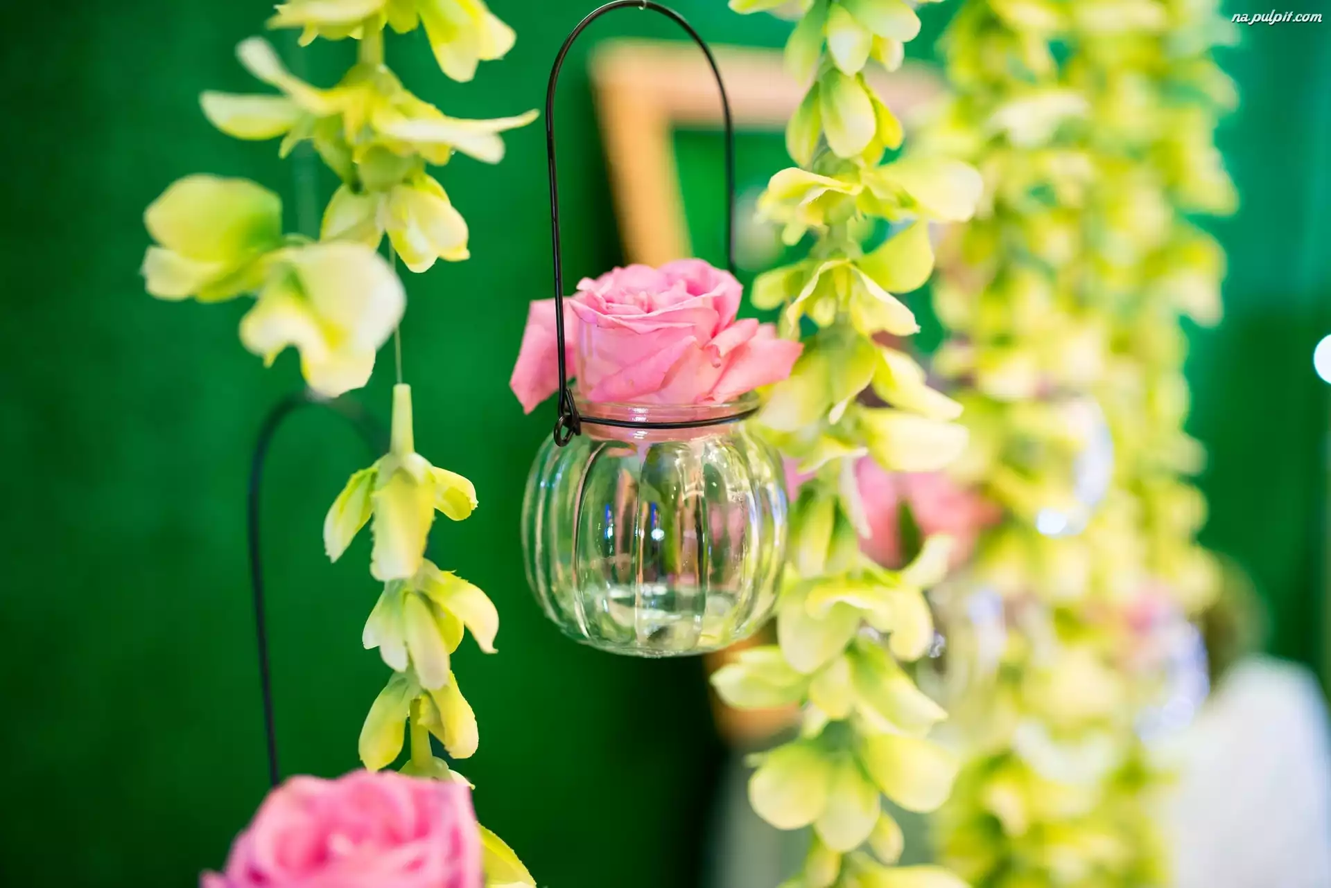 Róża, Zielona Ściana, Wiszące Pnącza, Lampion, Kwiat, Ogród