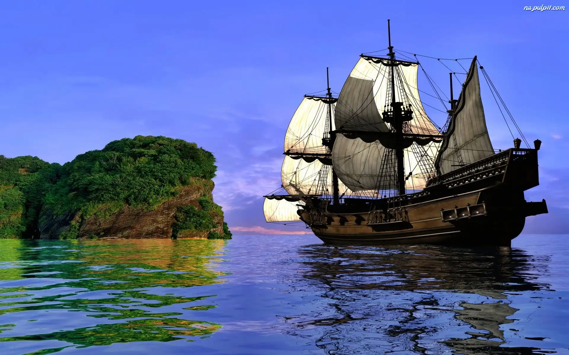 Żaglowiec, Wyspa, Zielona, Morze Na Pulpit
