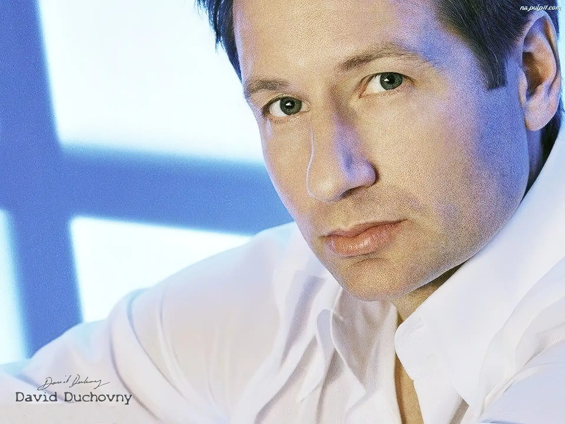zielone oczy, David Duchovny, biała koszula Na Pulpit