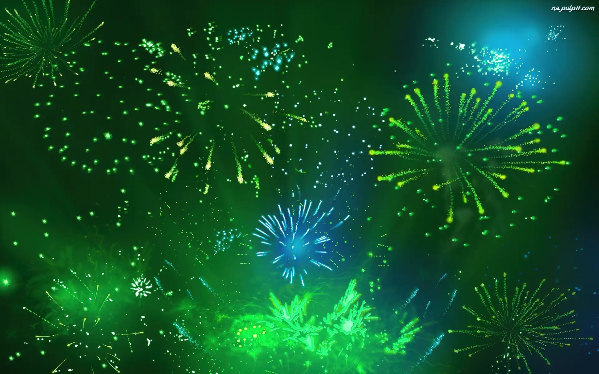 Fajerwerki, Zielone, Niebieskie Na Pulpit