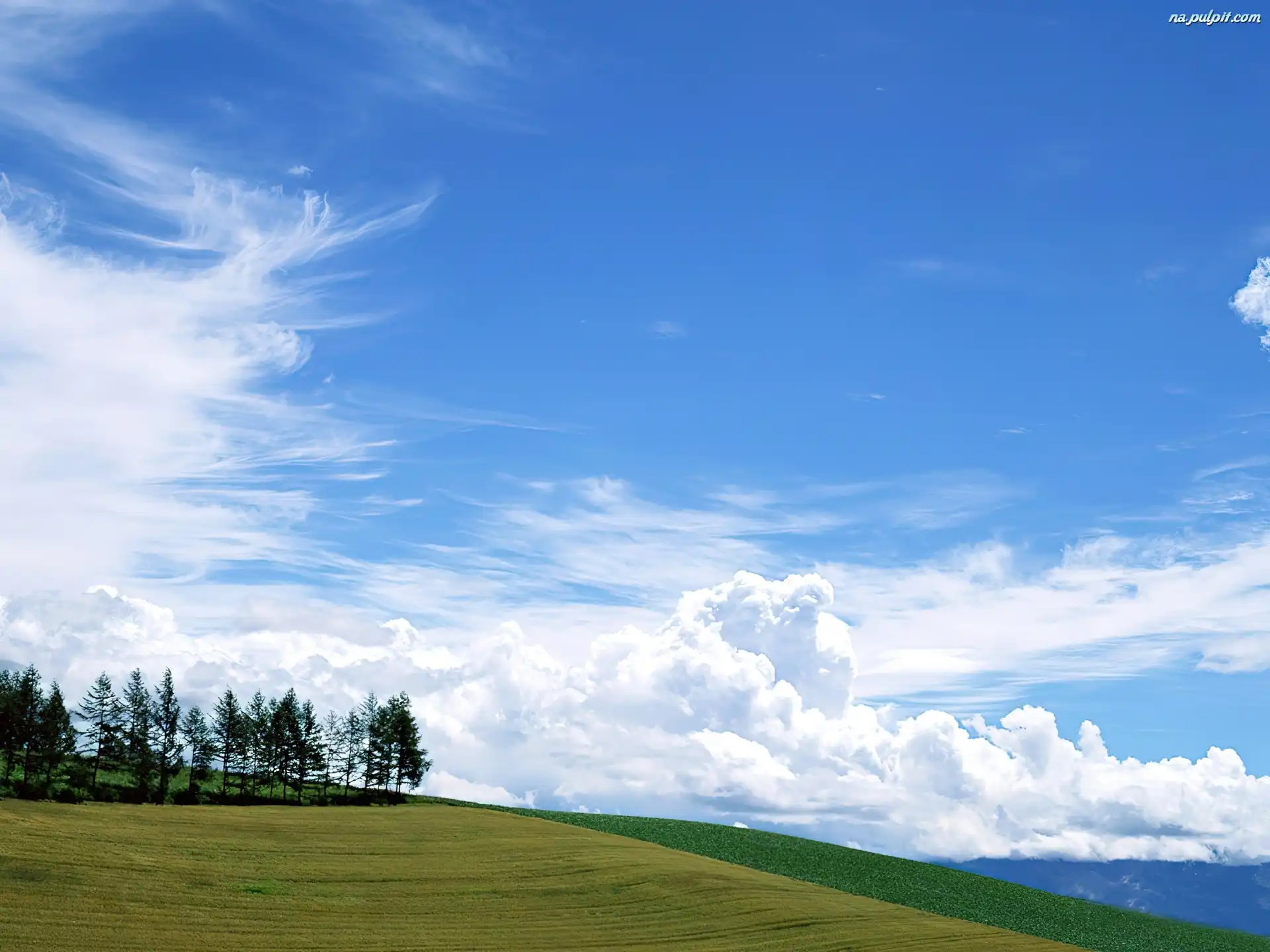 Zielone, Błękitne, Niebo, Pole, Żółto, Drzewka Na Pulpit