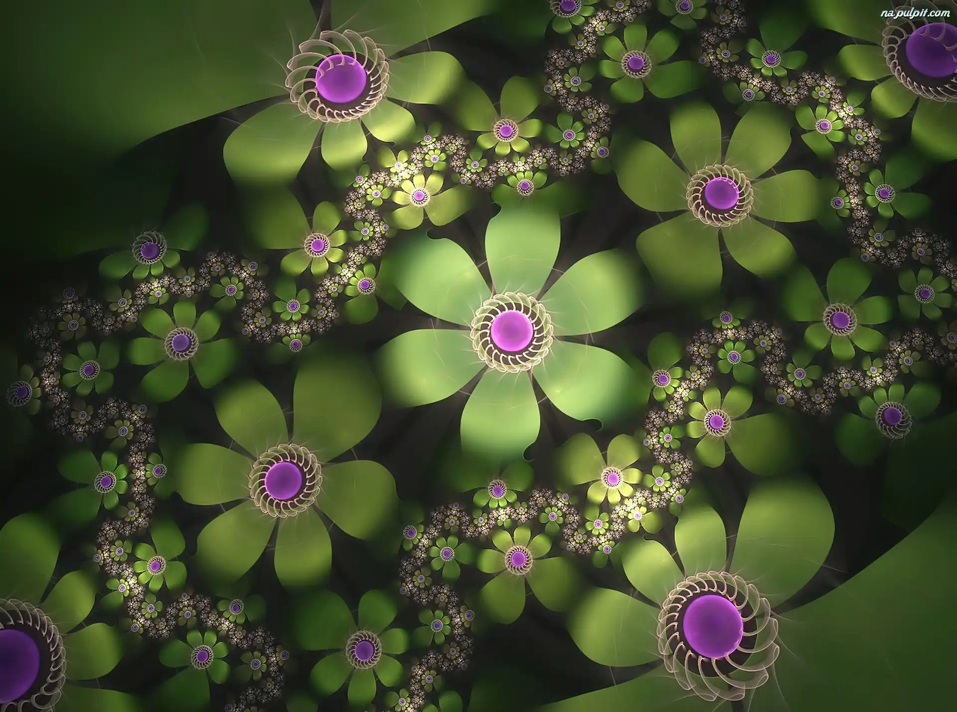 Fioletowe, Zielono, Kwiatki