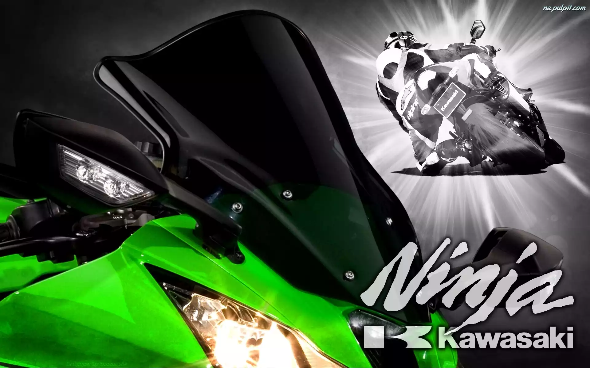 Motocyklista, Zielony, Motocykl, Kawasaki ZX-10R Ninja, Åšcigacz Na Pulpit
