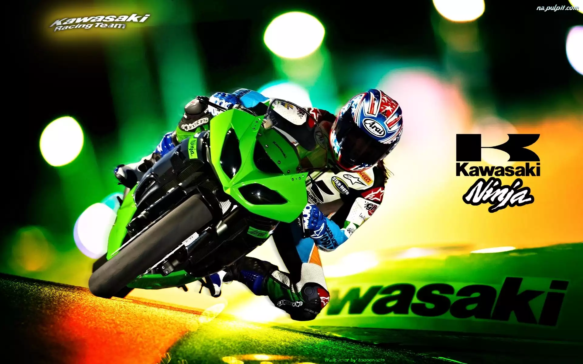 Motocyklista, Zielony, Kawasaki Ninja ZX-10R, Logo Na Pulpit