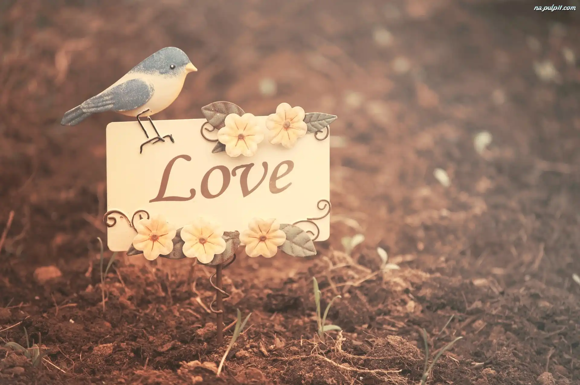 Ptak, Napis, Kwiaty, Ziemia, Kartka, Papier, Love Na Pulpit