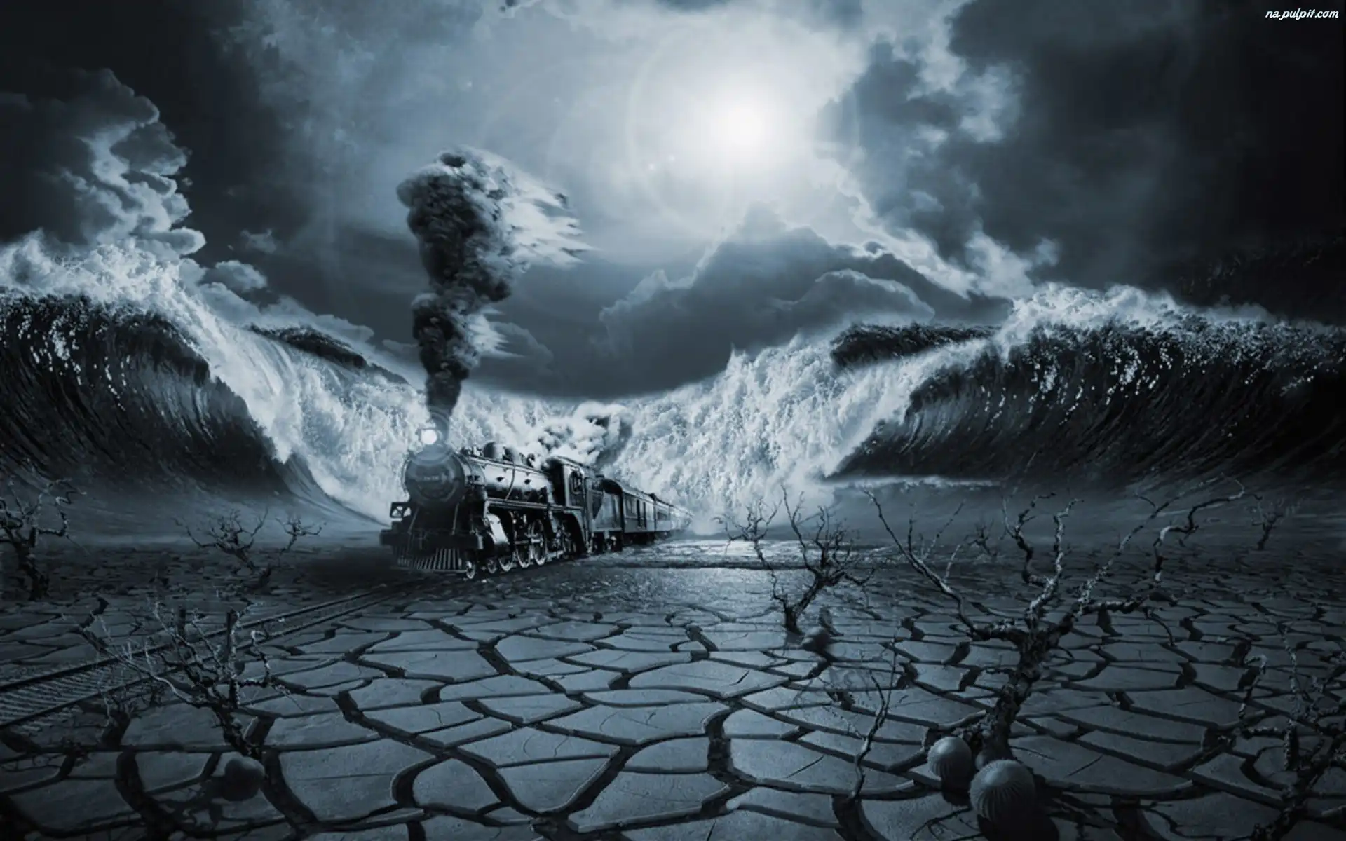 Ziemia, Księżyc, Fala, Pociąg, Spękana