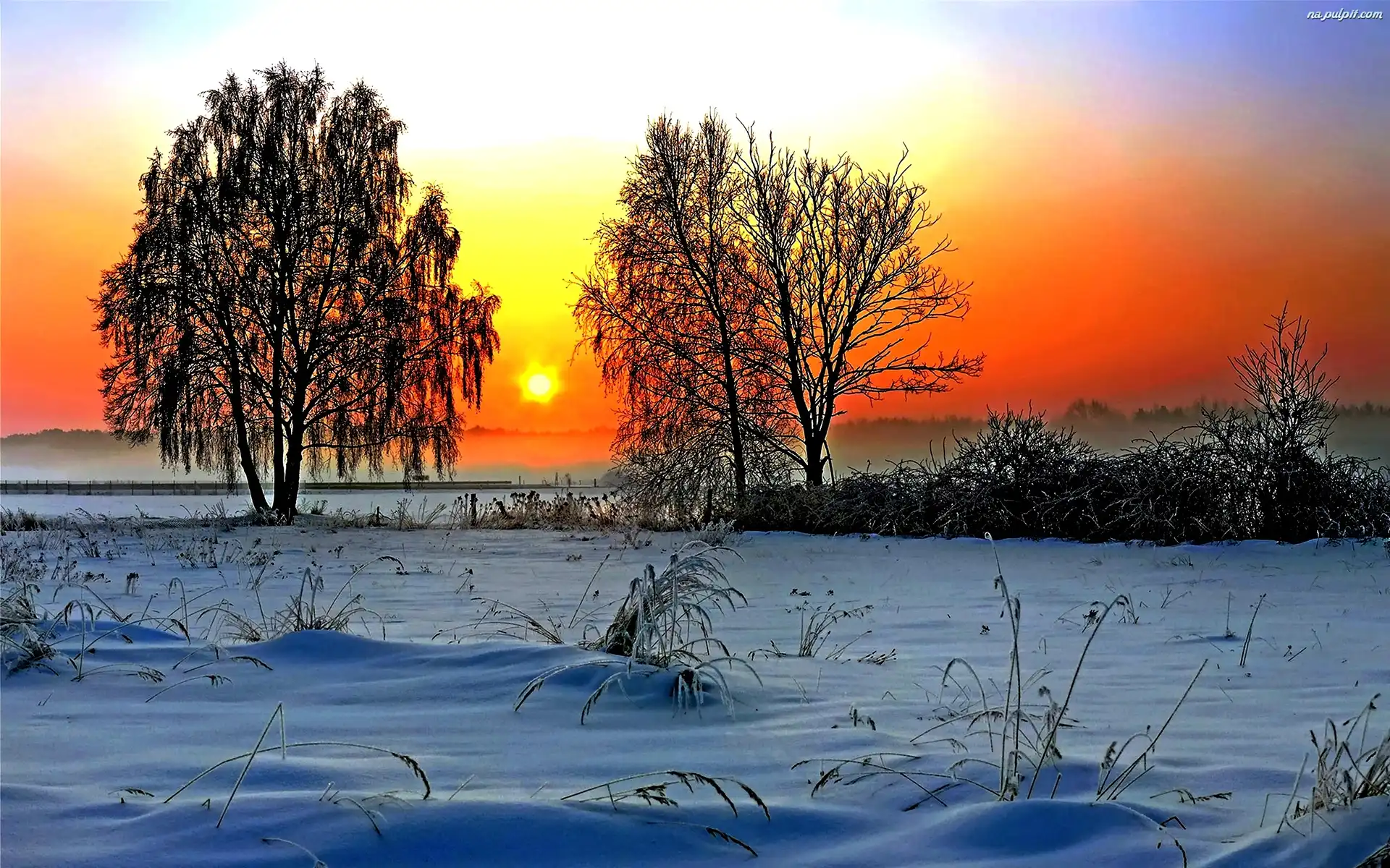 Zima, Promienie, Drzewa, Łąki, Słońca Na Pulpit