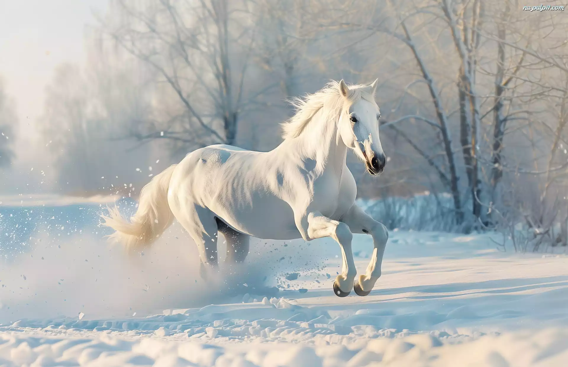 Śnieg, Zima, Biały, Drzewa, Koń Na Pulpit