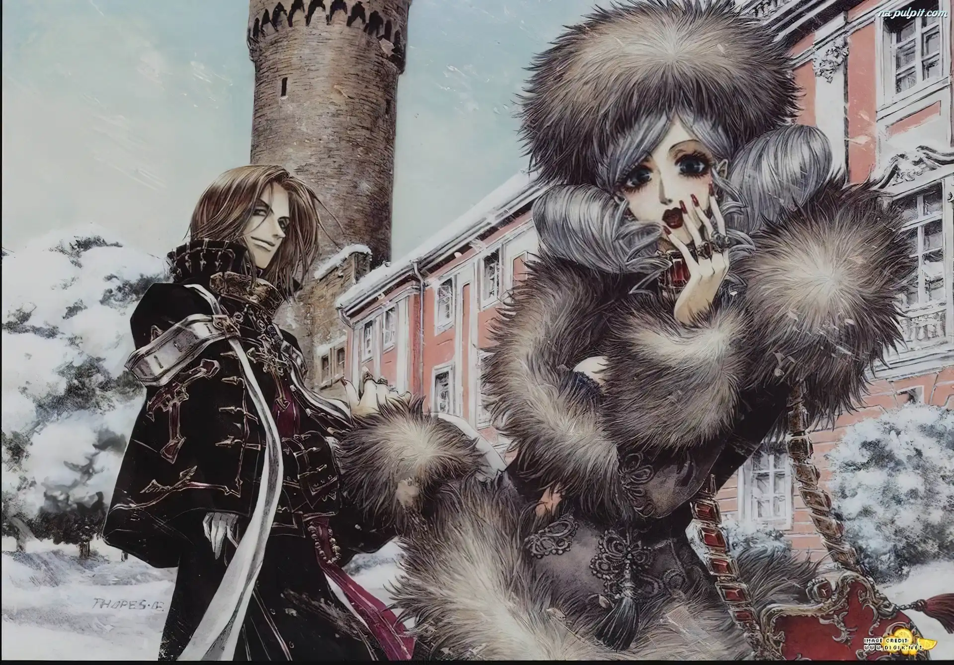 zima, futro, postacie, Trinity Blood, zamek Na Pulpit