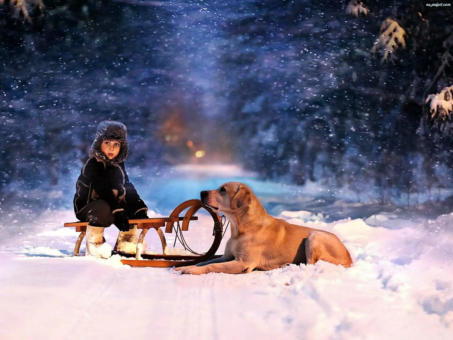 Zima, Pies, Chłopczyk, Las Na Pulpit
