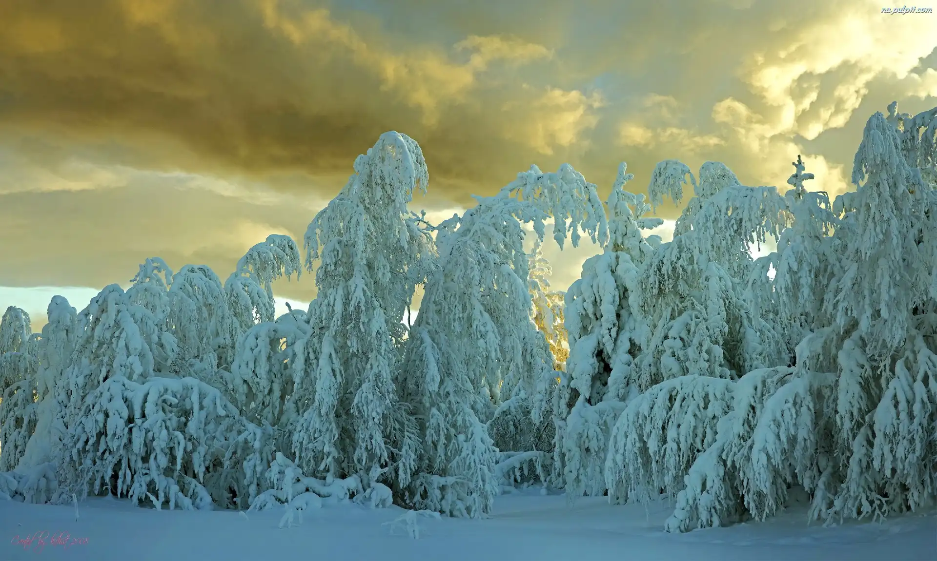 Zima, Drzewa, Chmury, Åšnieg Na Pulpit
