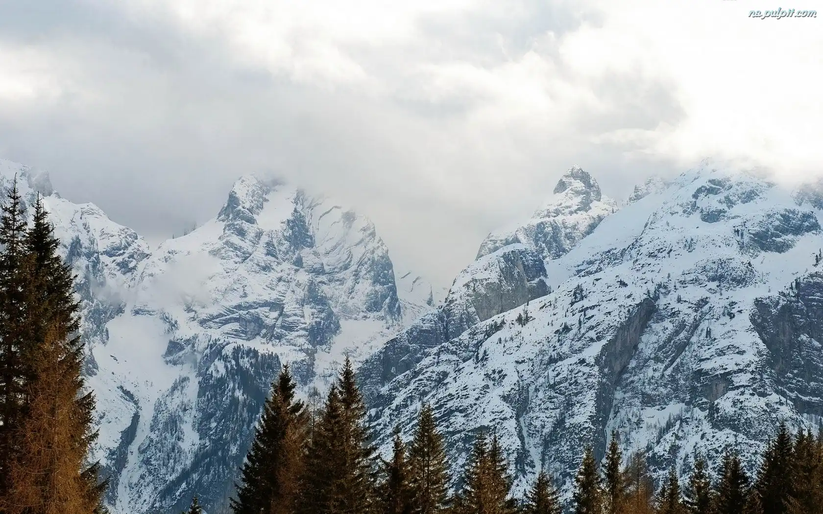 Zima, Góry, Chmury, Drzewa Na Pulpit