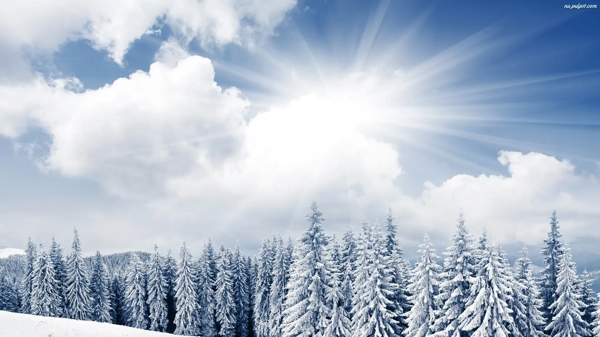 Zima, Słońca, Promienie, Chmury, Las Na Pulpit
