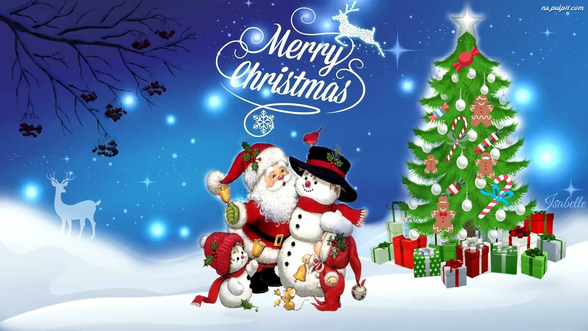 Zima, Bałwan, Mikołaj, Choinka, Prezenty Na Pulpit