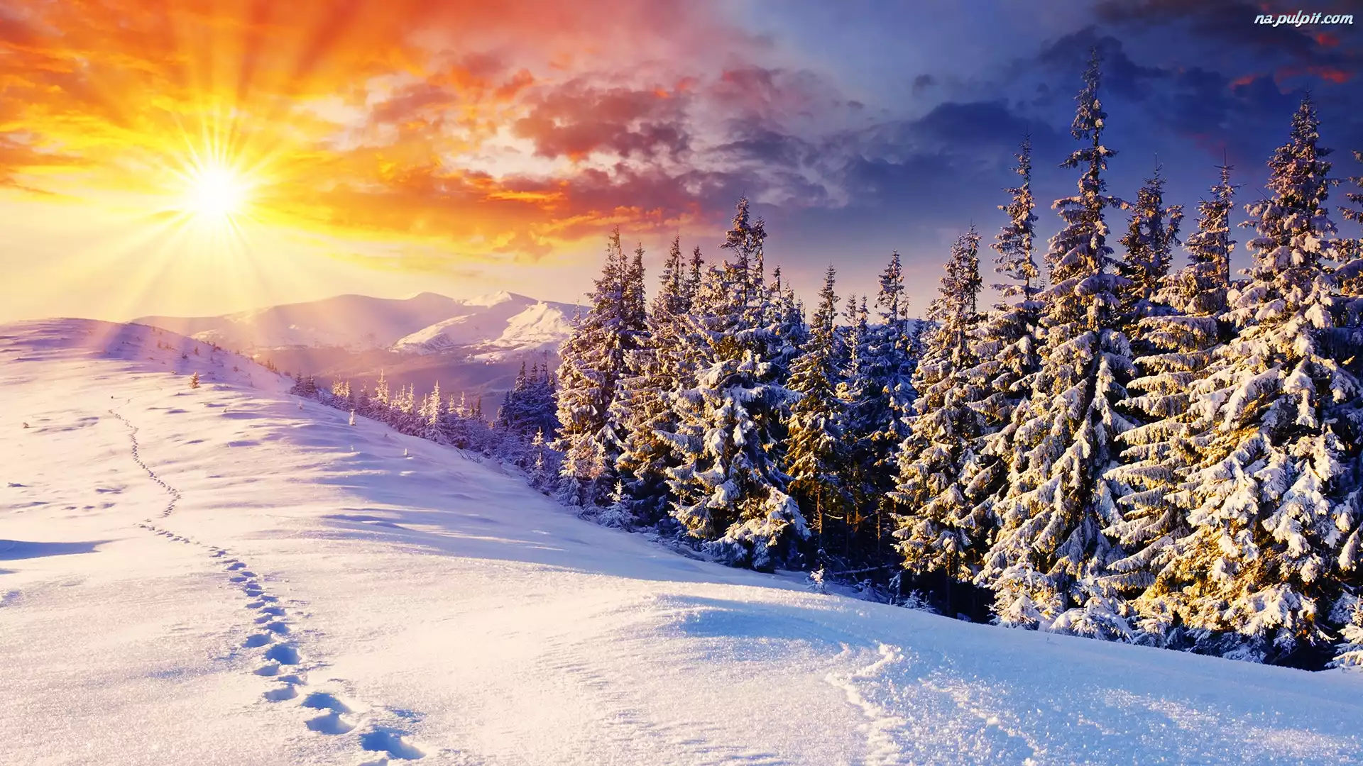 Zima, Śnieg, Choinki, Słońce Na Pulpit