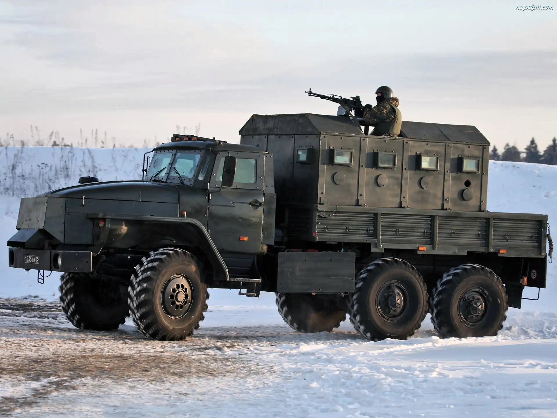 Zima, Wojskowa, Ciężarówka, Żołnierz Na Pulpit