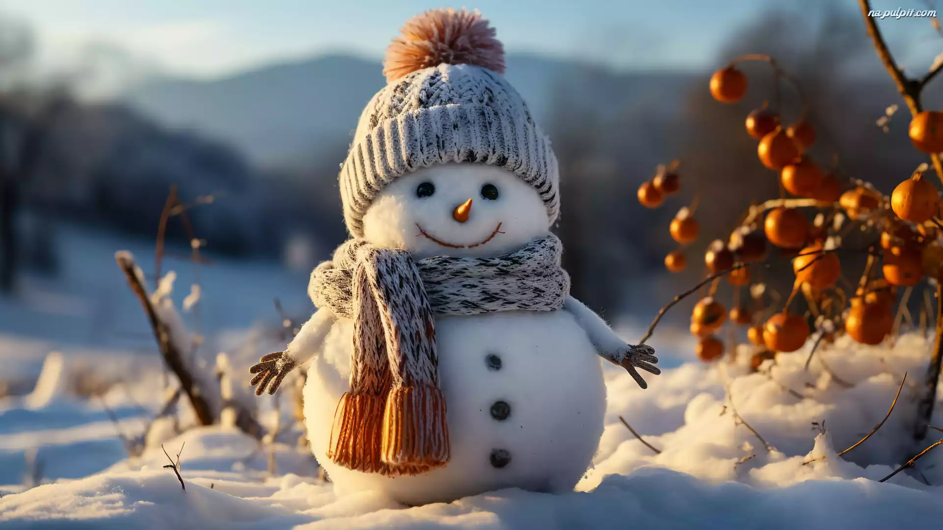 Światło, Szalik, Czapka, Zima, Śnieg, Bałwan, Rośliny