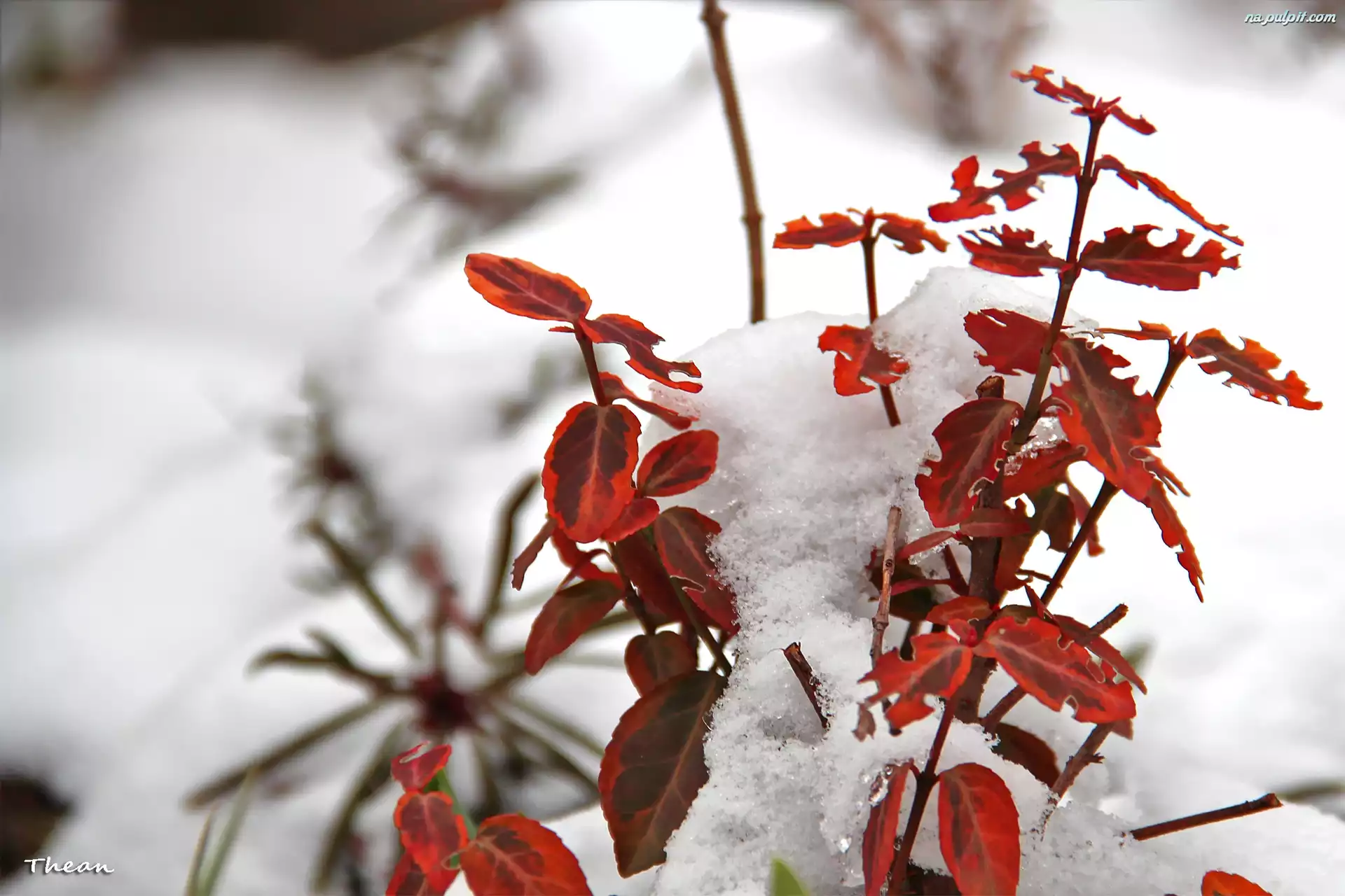 Zima, Roślina, Czerwona, Śnieg Na Pulpit
